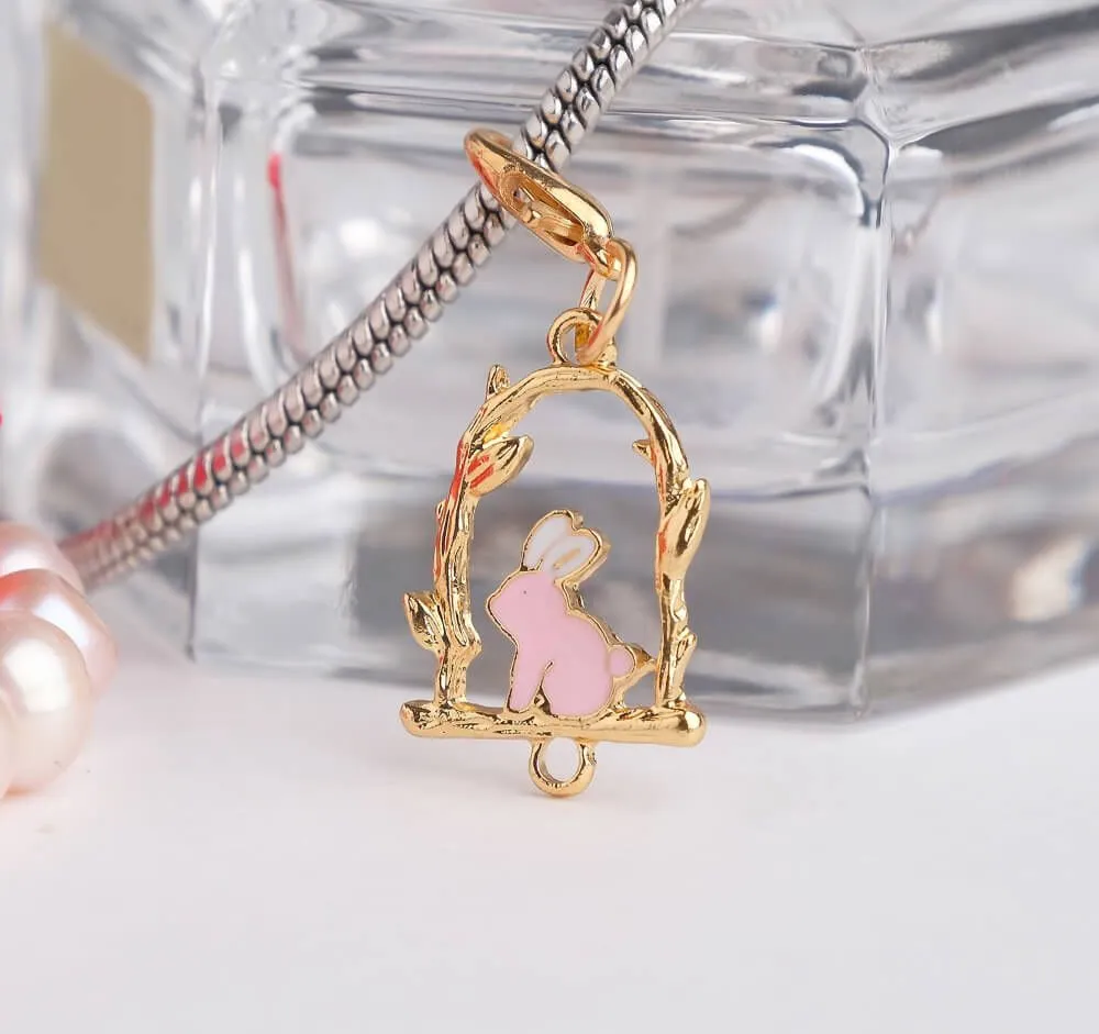 Очаровательный шарм в виде милого кролика розового цвета украсит собой Ваш браслет или подвеску. Проявив фантазию, Вы сможете создать необычное украшение, которое будет только у Вас! Этот зайка будет прекрасно сочетаться с разными стилями в одежде, гармонируя с любым выбранным Вами образом. Также его можно будет присоединить и к сумочке.