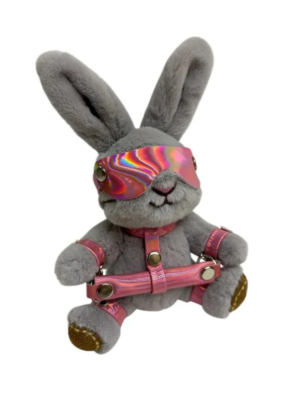 Зайчик-раб отлично знает толк в удовольствиях, поэтому прикован к распорке с маской на глазах в ожидании ярких ощущений. Такой зайчик недвусмысленно намекнет на Ваши фантазии, если подарите его второй половинке. Игрушка оснащена карабином и кольцом, её можно носить в качестве брелока на ключах или сумке. Высота зайчика 18 см, очень удобный размер. Костюмчик выполнен из розовой голографической эко-кожи. Цвет зайчиков в ассортименте.