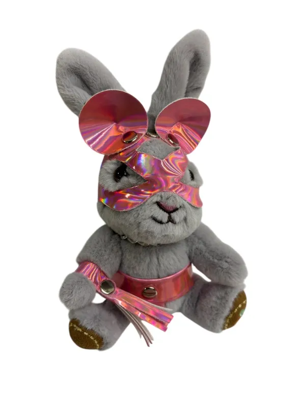 Хитрый зайчик в маске мышки с плетью – забавный и оригинальный аксессуар для любителей БДСМ и для всех страстных неординарных натур. Плеть снимается и может служить отдельным аксессуаром, например, украсит ключи. Игрушка оснащена карабином и кольцом, её можно носить в качестве брелока на ключах или сумке. Высота зайчика 18 см, очень удобный размер. Костюмчик выполнен из лаковой розовой голографической эко-кожи. Цвет зайчиков в ассортименте.