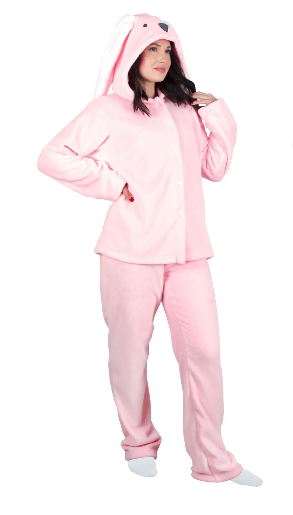 Весёлая пижама в виде зайки - это уютное и оригинальное решение для дома. Комплект состоит из штанов и толстовки на молнии с мордочкой и ушками на капюшоне. Она подойдёт для пижамных вечеринок, карнавалов и просто повеселит вас! Материал пижамы легкий и мягкий, как шубка у зайчика, в нём не жарко в тёплые дни, он практичен в носке и долго держит свой эстетический вид. Унисекс.