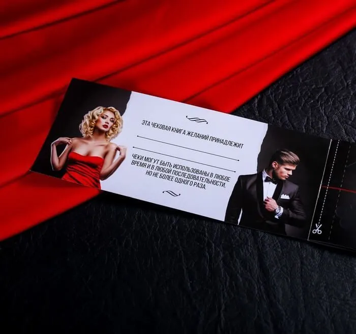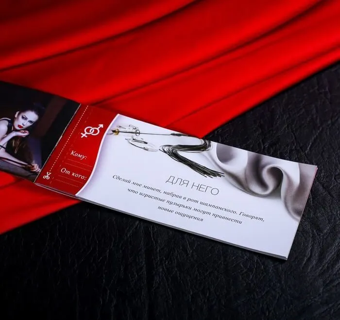 Набор из 12 разных комплектов купонов позволит Вам добавить романтики в отношения и осуществить свои самые сокровенные желания. Правила просты - выберите понравившийся купон и вручите его своей второй половинке. Каждый купон может стать для Вас неожиданным, но приятным сюрпризом, поэтому не бойтесь воплощать свои желания в жизнь. Выбирайте любой понравившийся план событий и дарите друг другу страстное наслаждение или проведите вдвоем вечер, наполненный нежностью и любовью!