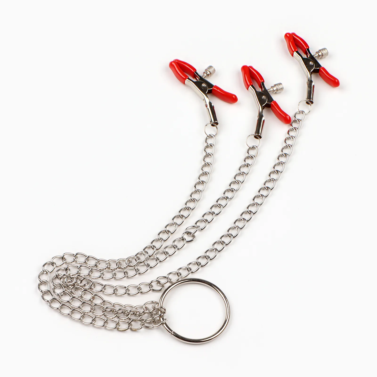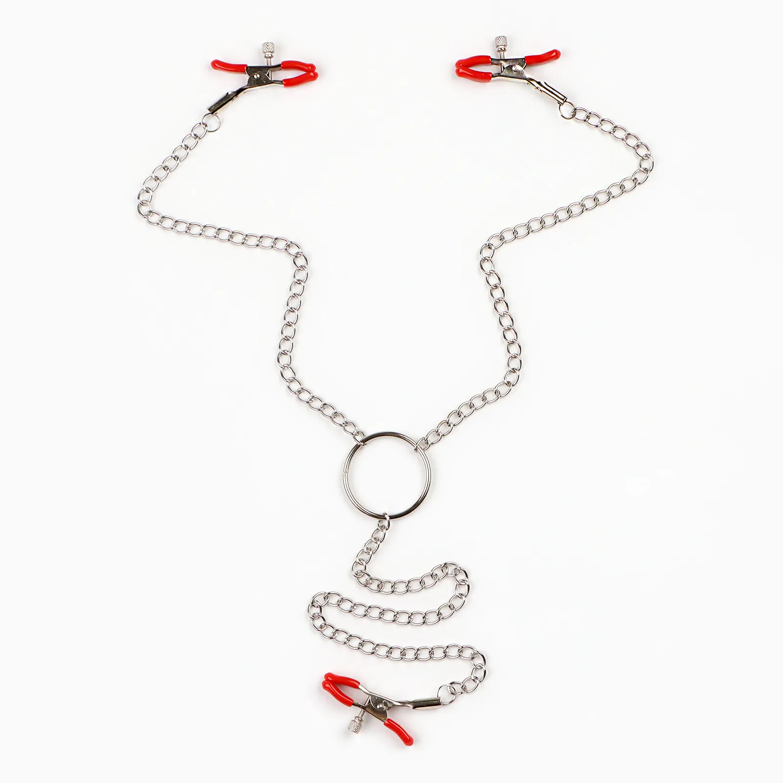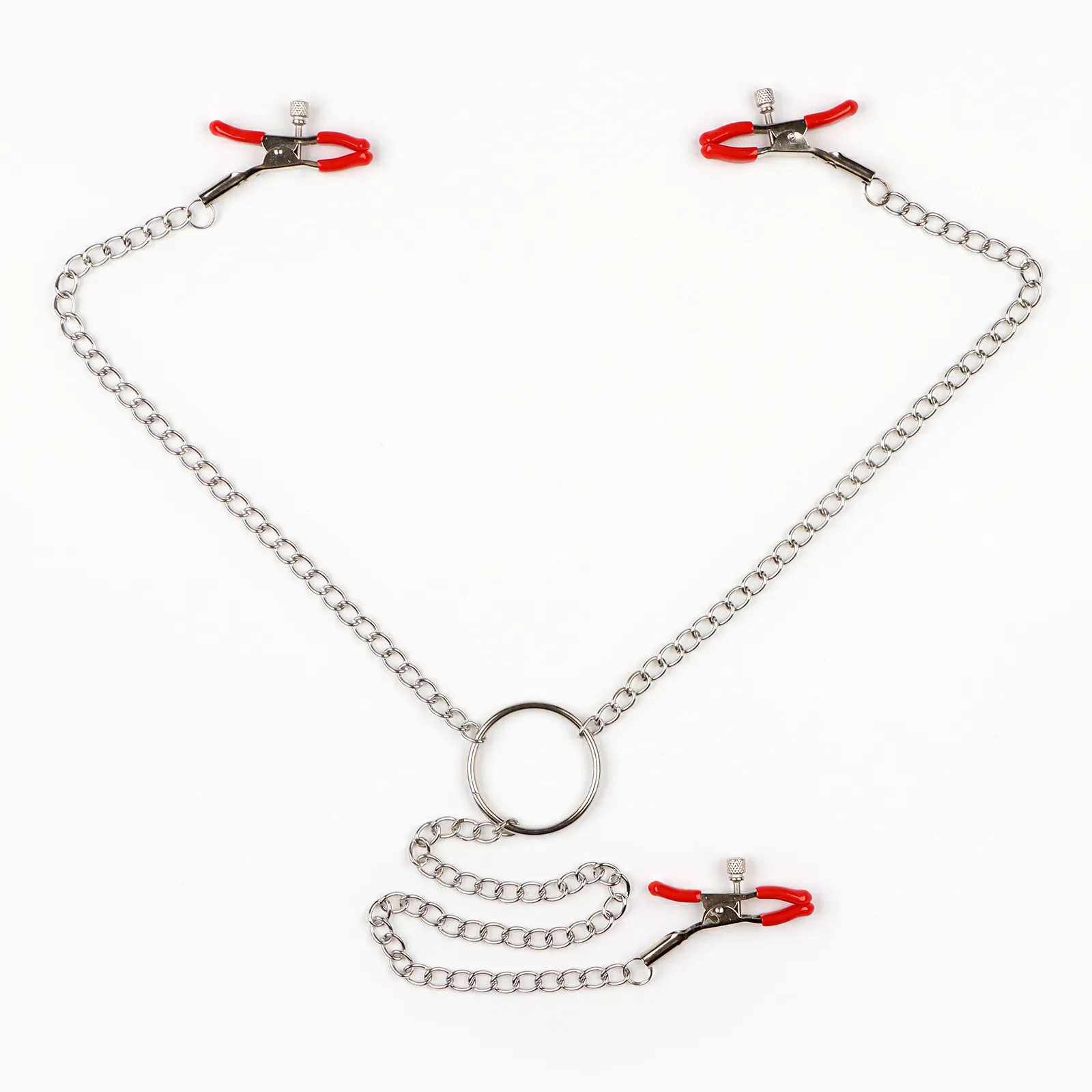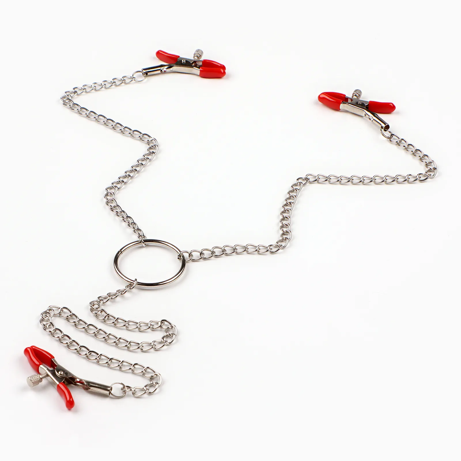 Зажимы для сосков и клитора изготовлены из алюминия, изделие имеет пластиковые наконечники. Длинная цепь позволяет одновременно использовать зажимы для сосков и клитора. Соединяющая цепочка является не только красивым дополнением, но и позволяет оттягивать и вращать соски для получения дополнительных приятных ощущений. Можно использовать как самостоятельный стимулятор, а также как дополнение к прелюдии и сексу.