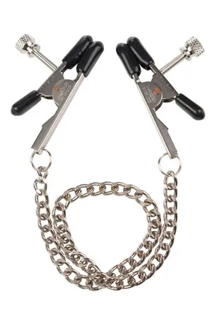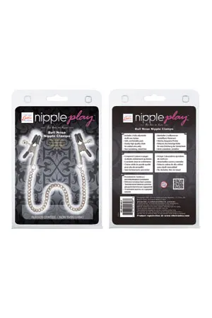 Nipple Play Bull Nose Nipple Jewelry - регулируемые зажимы на соски в виде прищепок с цепочкой. Они изготовлены из несодержащего никеля железа. Кончики зажимов оснащены мягкими, удобными подушечками из ПВХ.
