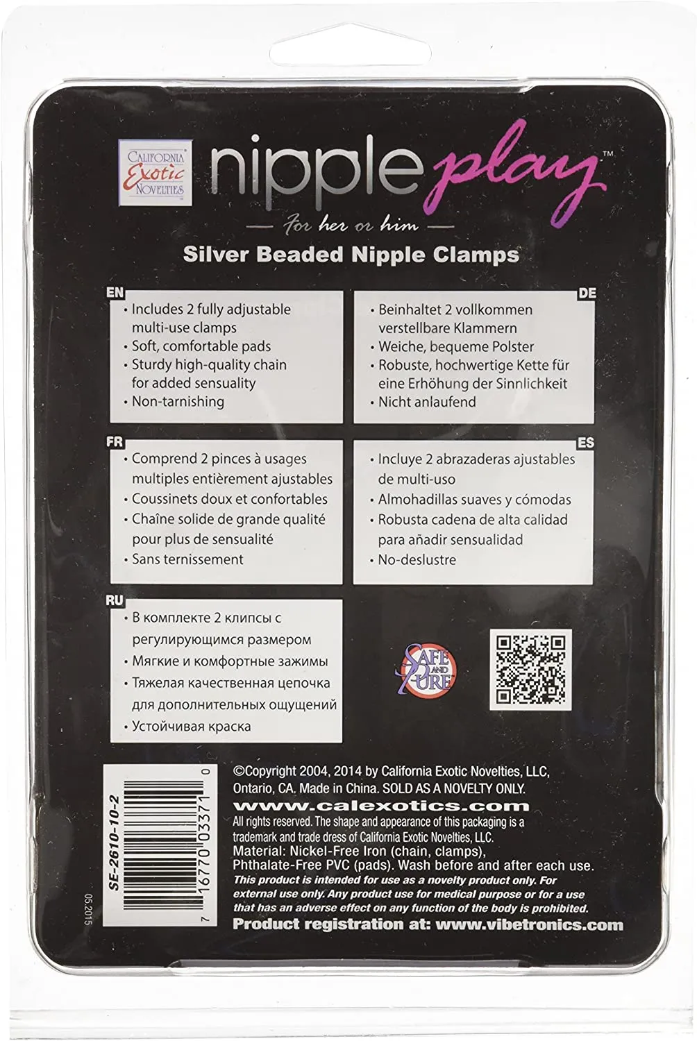 Silver Beaded Nipple Clamps - регулируемые зажимы на соски в виде прищепок с цепочкой в виде бусинок. Они изготовлены из несодержащего никеля железа. Кончики зажимов оснащены мягкими, удобными подушечками из ПВХ.