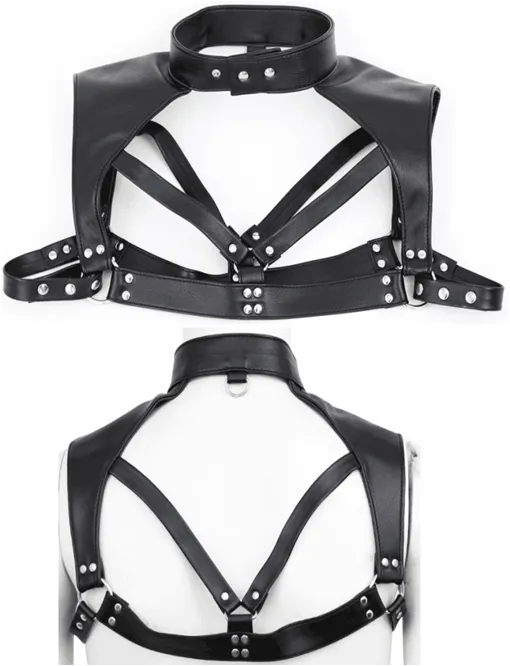 Женская портупея прекрасно дополнит любой образ, которому хочется придать особый стиль и воинственность. Аксессуар будет гармонично смотреться с различными стилями одежды, выразительно подчеркивая Вашу индивидуальность. Портупея создана из нескольких ремней, соединенных между собой при помощи металлических колец. Портупея изготовлена из экокожи черного цвета, а вся фурнитура выполнена из нержавеющей стали.
