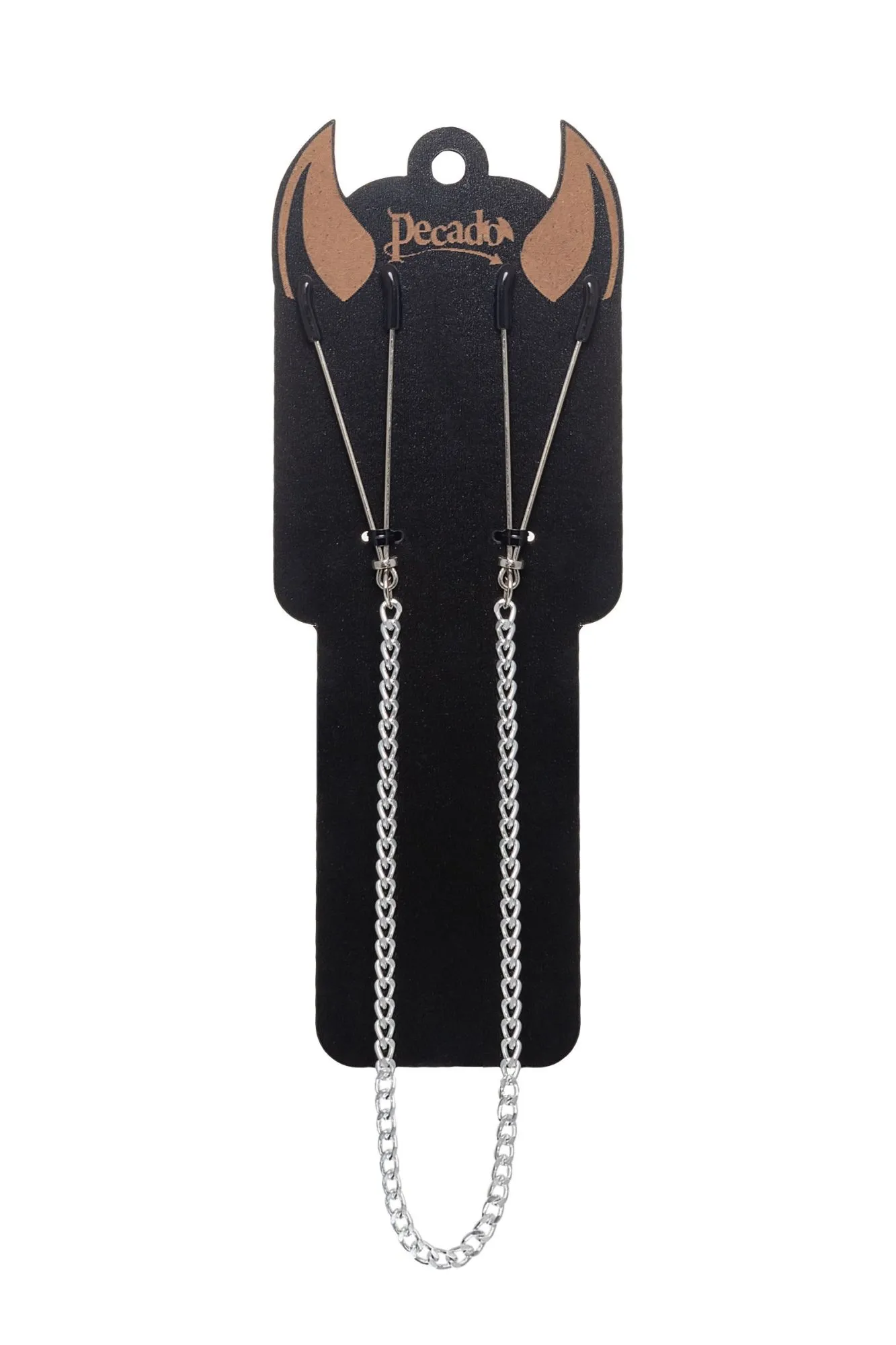 Зажимы-пилки на цепочке от Pecado только для тех, кто любит острые ощущения! Аксессуар из премиальных материалов подарит непередаваемую, взрывную гамму чувств. Соприкосновение холодного металла с нежной кожей сосков будоражит сознание. Основная, стальная часть атрибута компактная, тактильно приятная и ее удобно держать в руке. На концах черные резиновые наконечники, для безопасного воздействия на эрогенные зоны. Силу сжатия легко регулировать с помощью мини колец. В зависимости от личных предпочтений и сценария игры, можно выбрать легкое пощипывание, или сильное сдавливание. Подходят как женщинам, так и мужчинам. Зажимы соединены крепкой цепочкой. При каждом ритмичном покачивании груди, цепочка эротично движется и игриво звенит. А если за нее нежно потянуть, то можно увеличить бурлящий коктейль чувств от стимуляции. Попробуйте пикантный вид удовольствия с зажимом на цепочке от Pecado. Эффектно и возбуждающе! • Ручная работа. • Надежная высококачественная фурнитура. • Общая длина зажимов 7см, длина цепочки 31см. • Не требуют специального ухода.