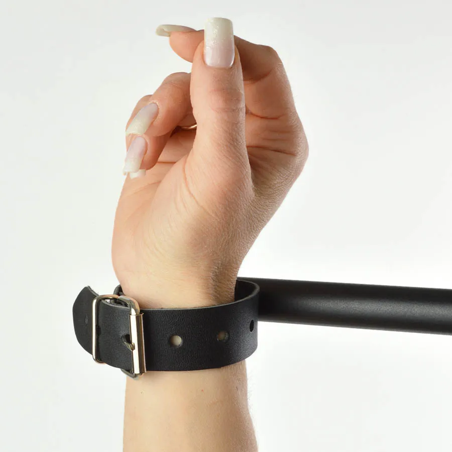 Распорка не заменимый аксессуар, который поможет ограничить подвижность и зафиксировать Вас или Вашего партнера в нужном положении для достижения максимального удовольствия. Девайс состоит из жесткой основы, которая покрыта натуральной кожей и украшена декоративной голографической вставкой. На основании располагаются 4 карабина для фиксации наручников и оков. Никелированная фурнитура обеспечивает более долгий срок службы изделия и сохраняет декоративные свойства. Длина распорки 75 см