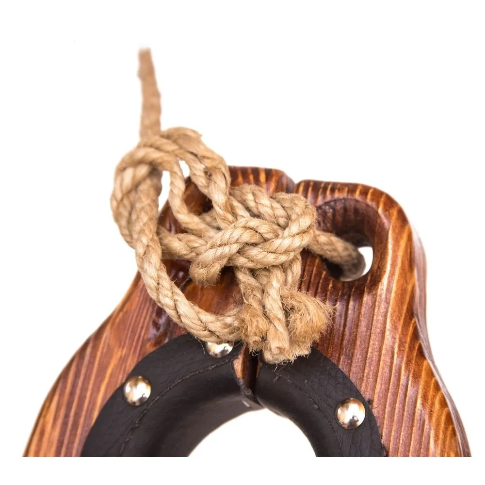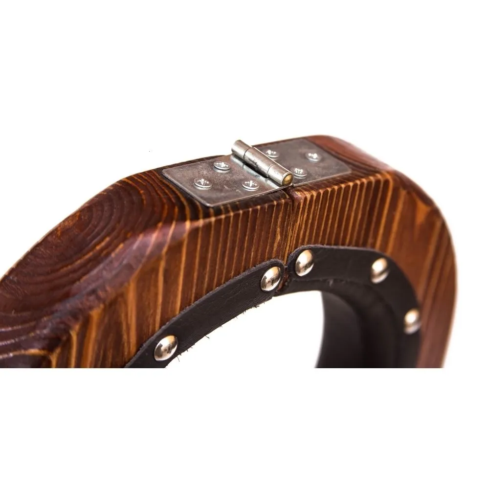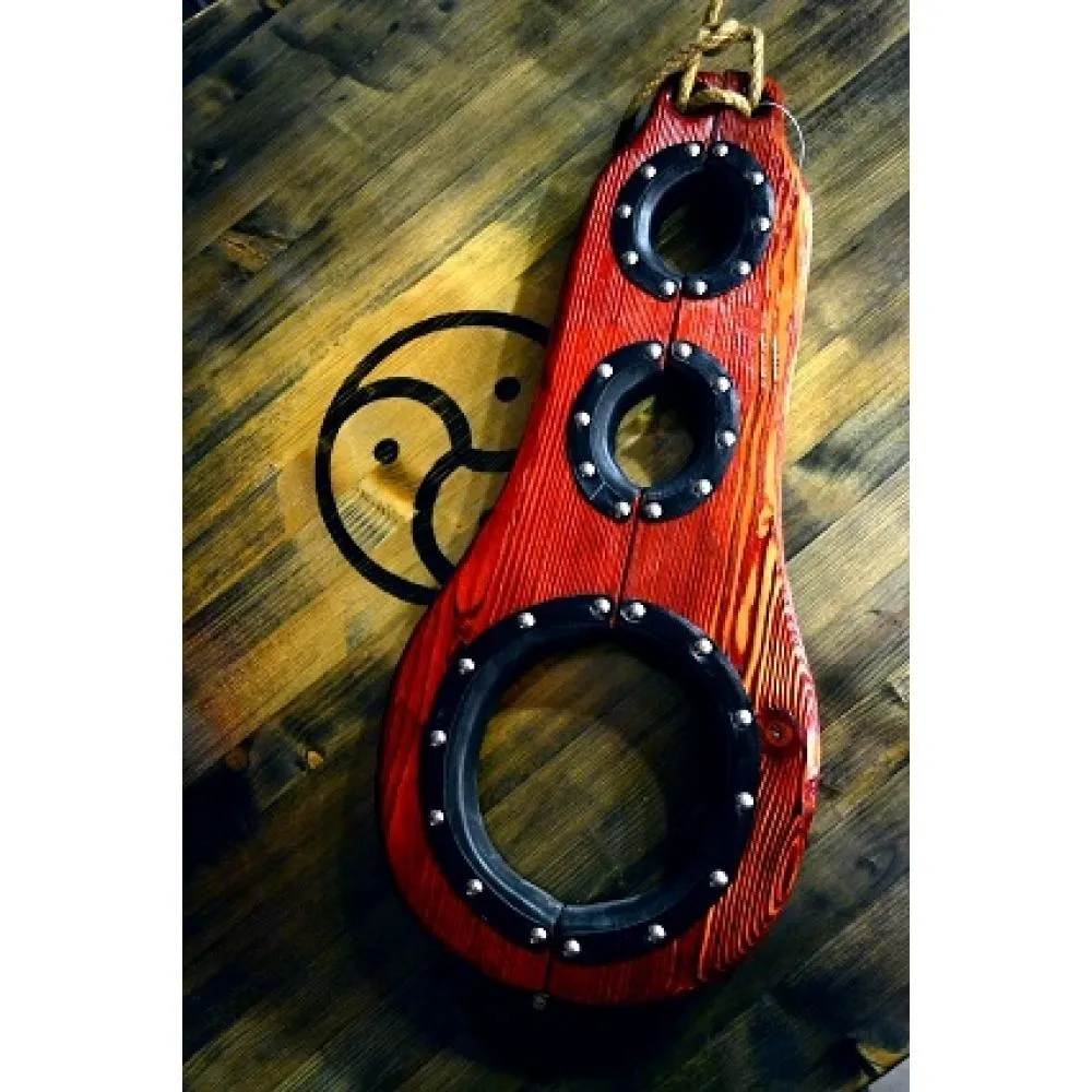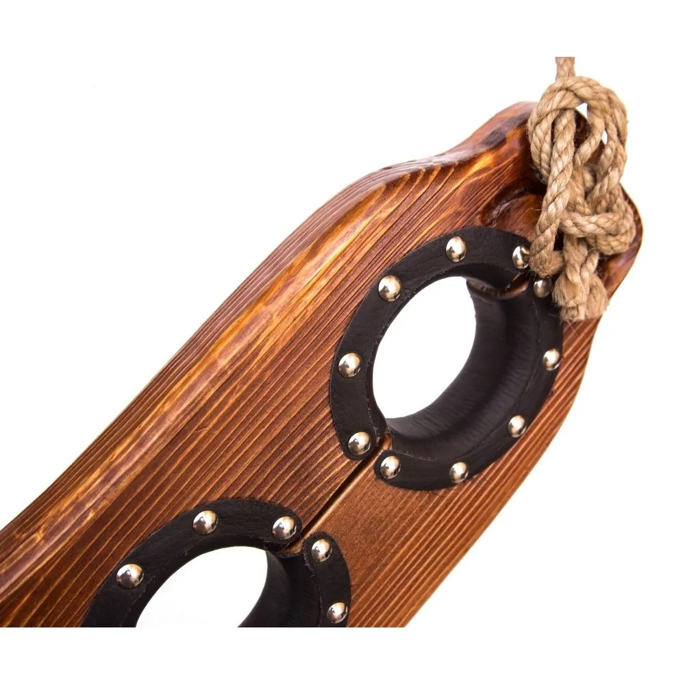 Бабья скрипка от компании "Подиум" выполнена из хвойных пород дерева, а отверстия окантованы натуральной кожей черного цвета. Благодаря этому использовать колодки будет комфортно и безопасно.