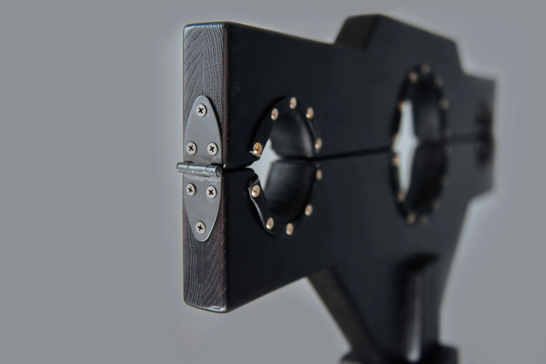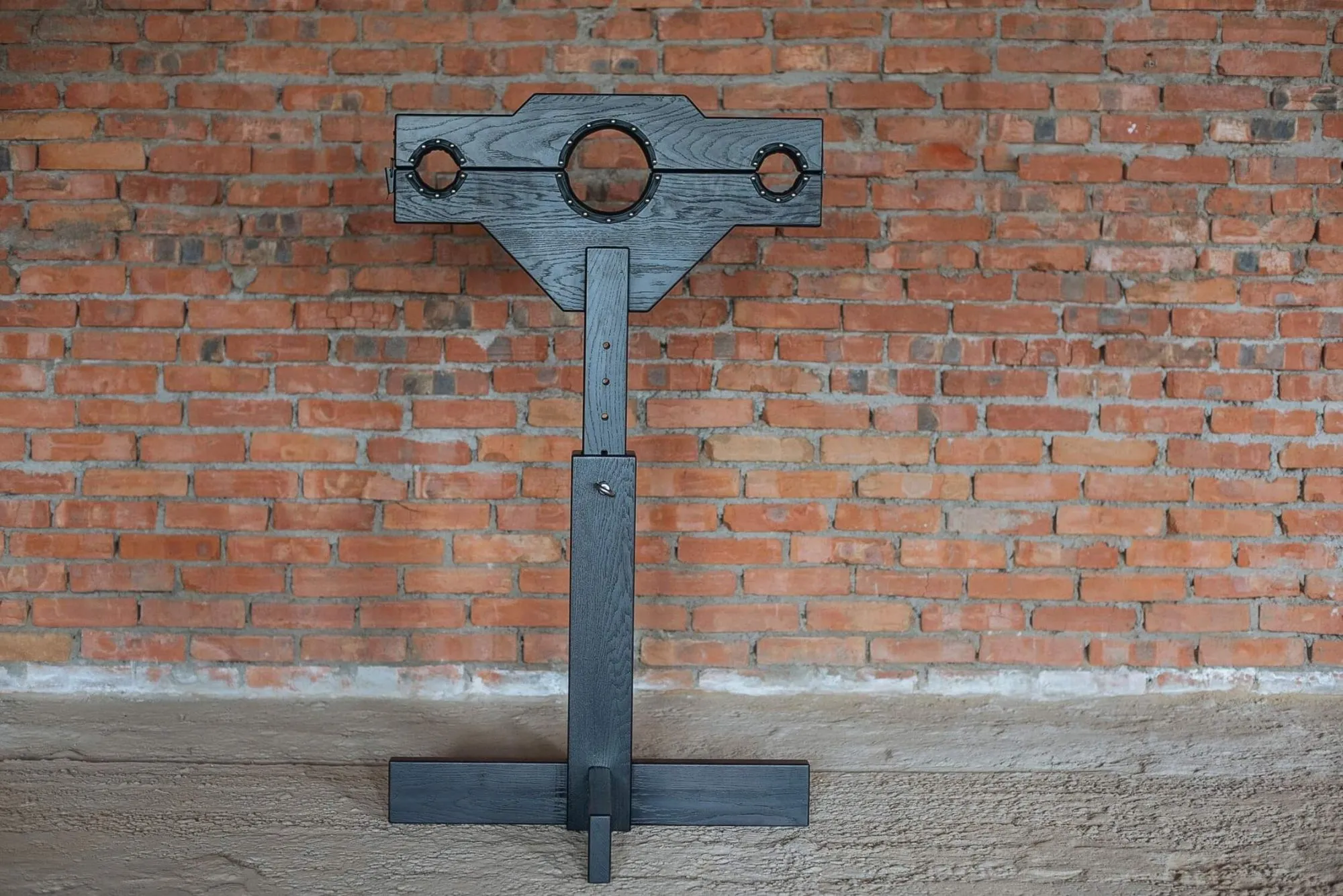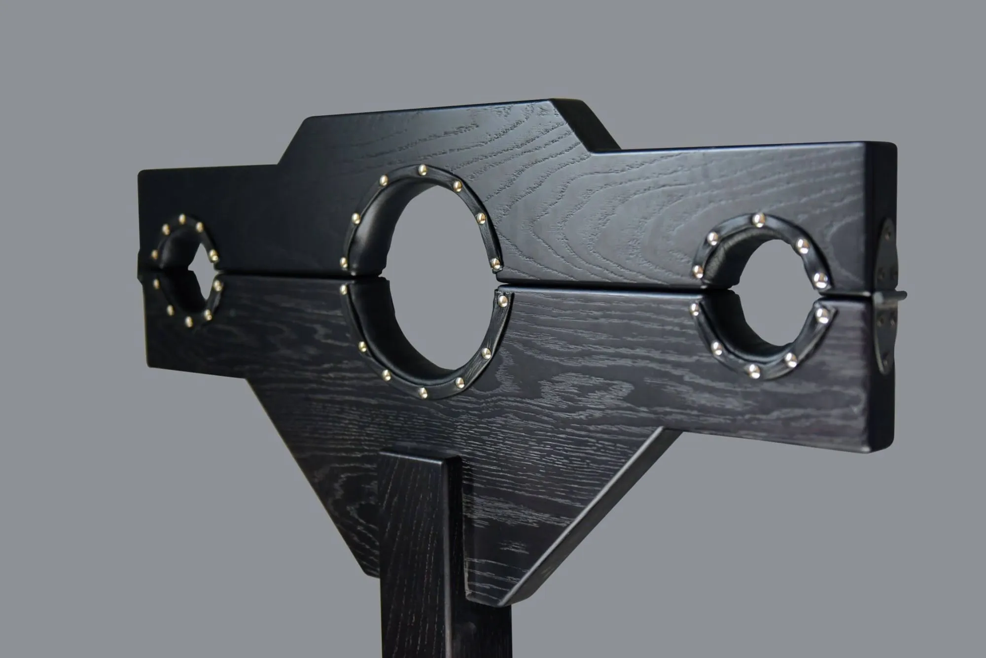 Большие кандалы предназначены для пар, практикующих БДСМ игры и желающих полностью пленить своего партнера. Изделие выполнено из массива дуба, а отверстия для головы и для рук отделаны натуральной кожей черного цвета. Благодаря продуманной конструкции кандалы можно будет немного опустить, чтобы положение подчиняющегося точно отвечало всем Вашим желаниям. Закованный в такие кандалы партнер испытает чувство абсолютной беспомощности и будет готов принять любое выбранное ему наказание.