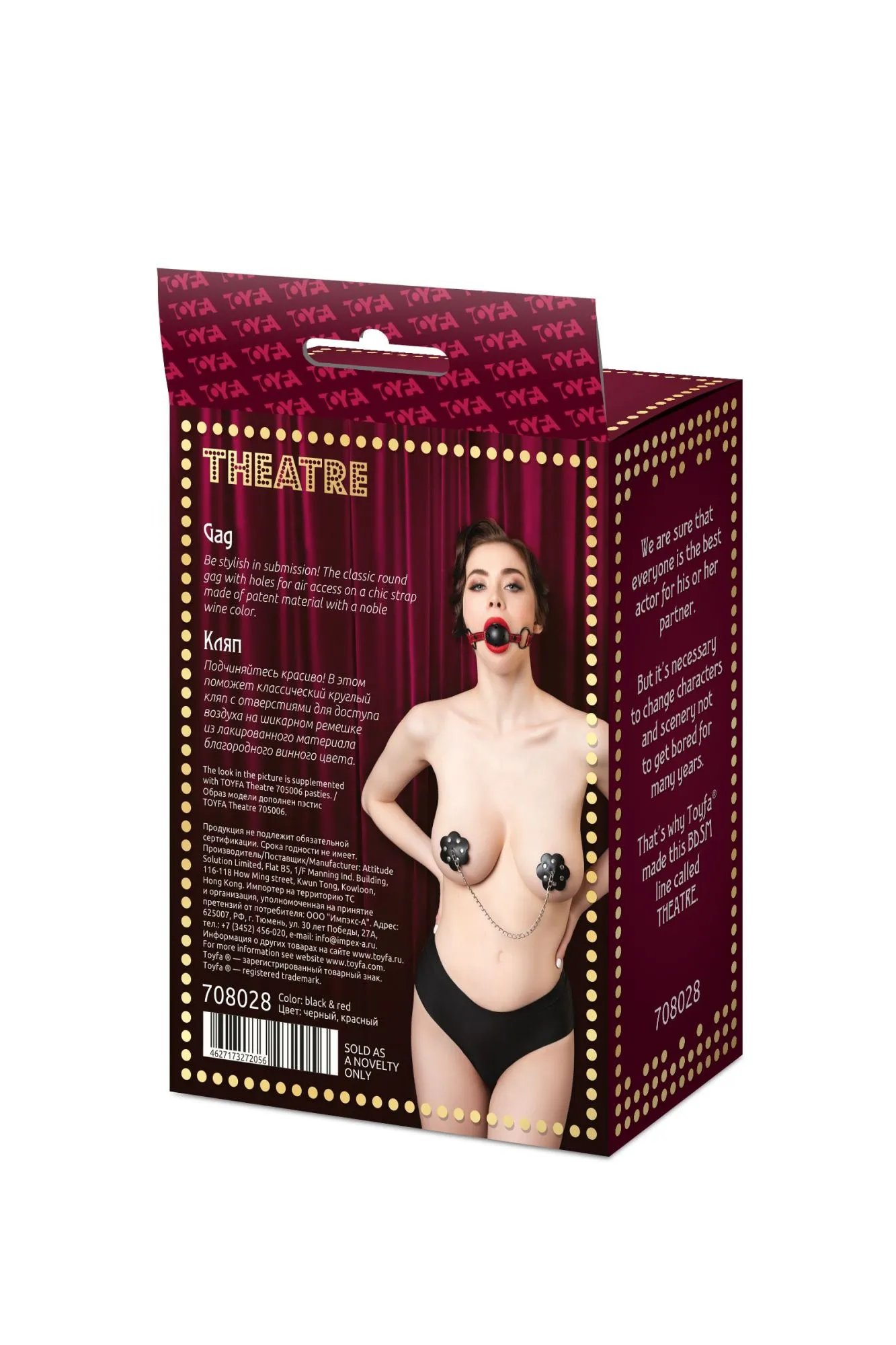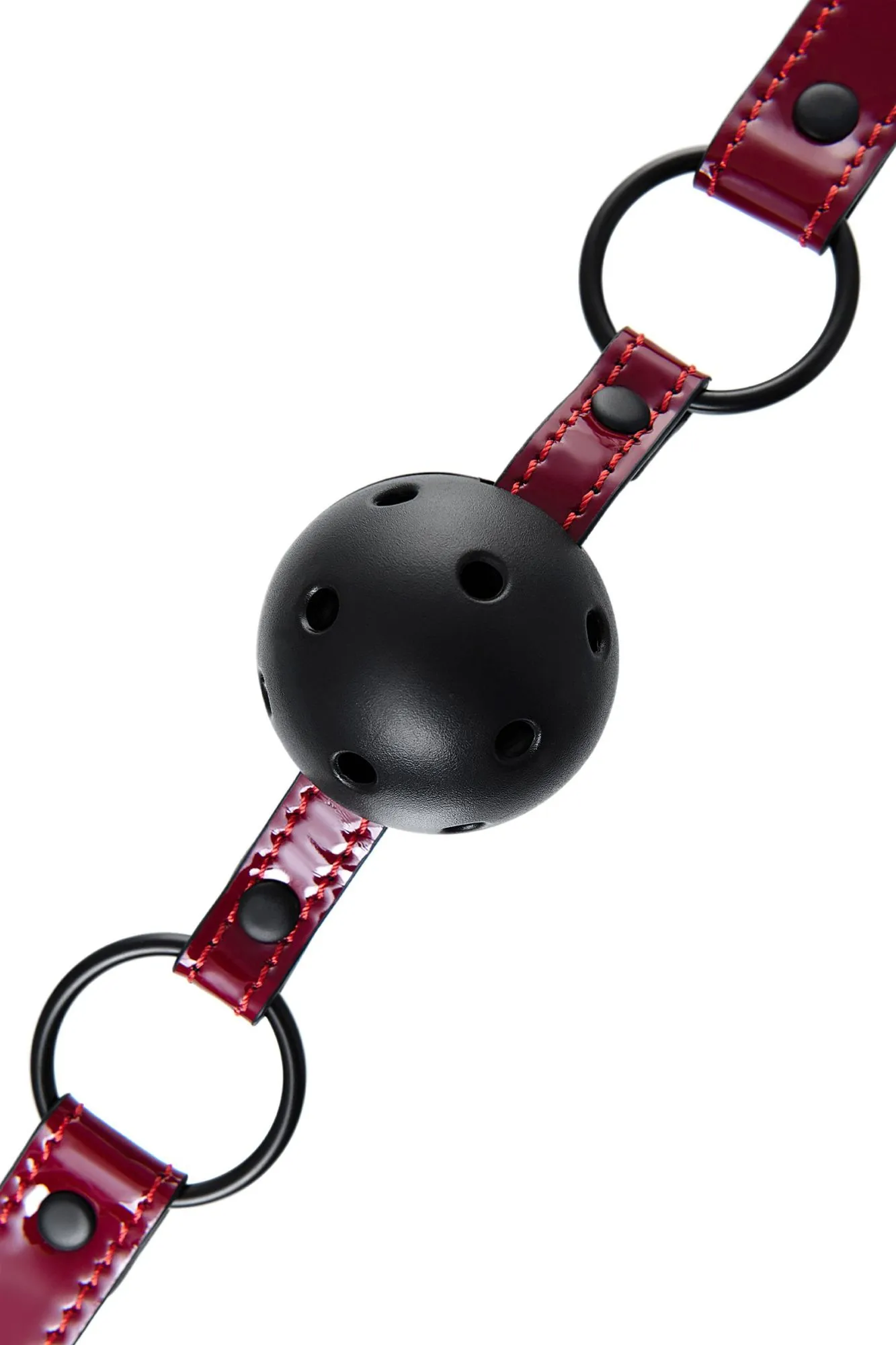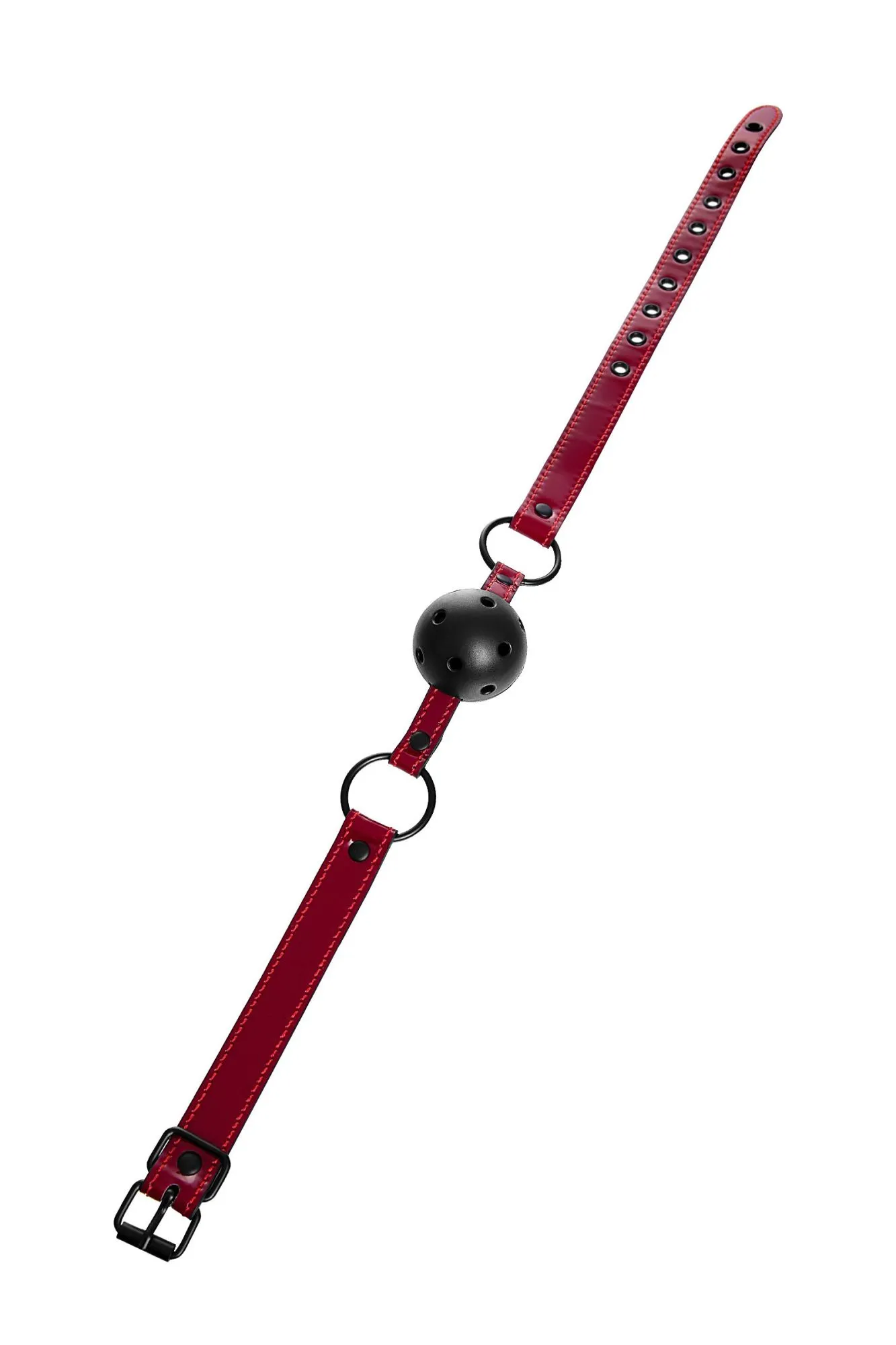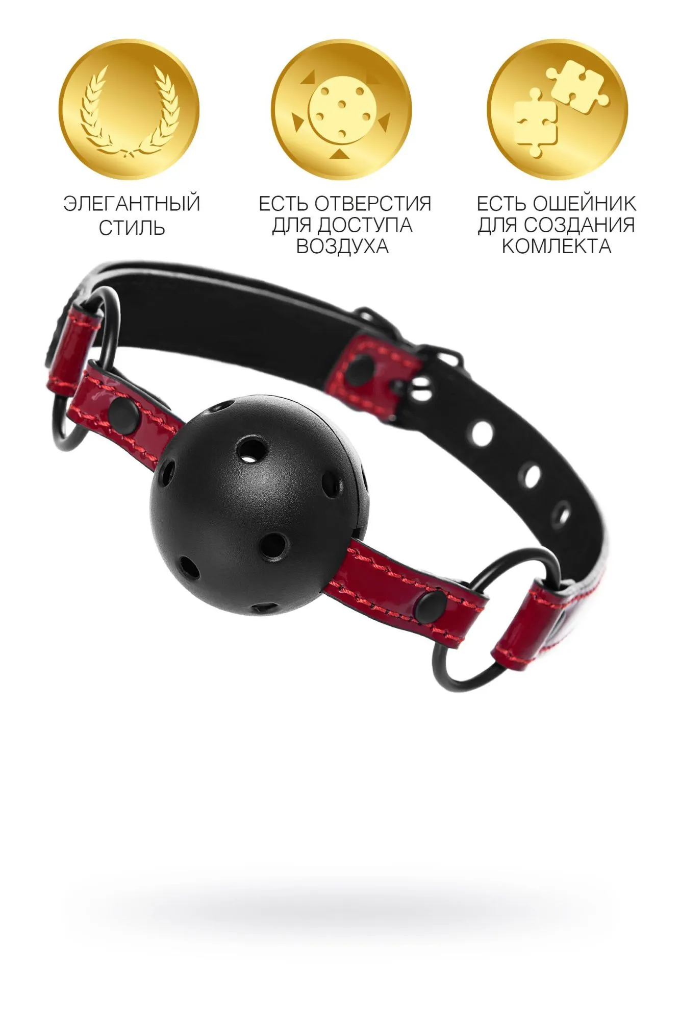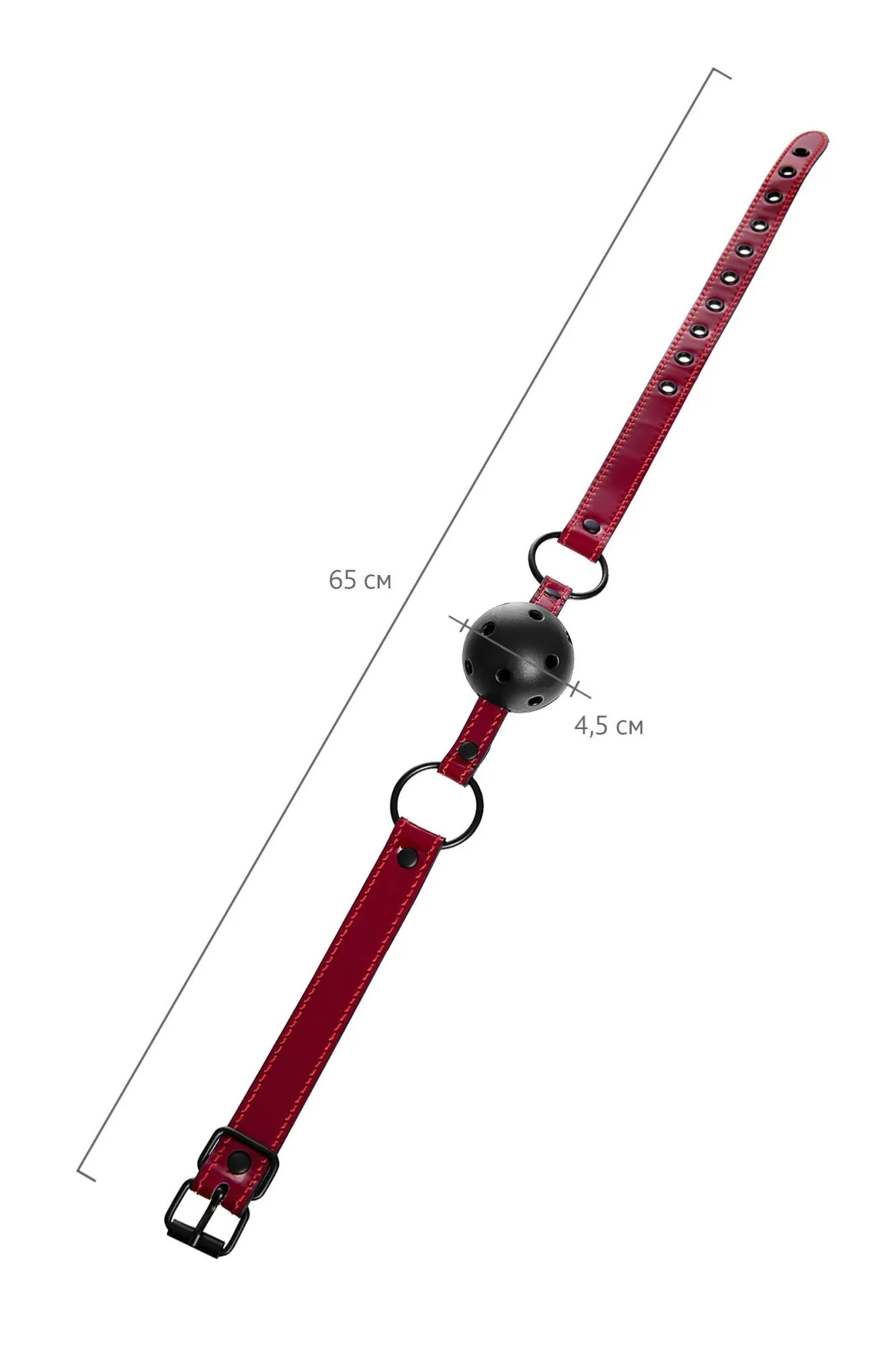 Театр – всегда обольщение и восхищение. Играйте и подчиняйтесь красиво! В этом поможет классический круглый кляп с отверстиями для доступа воздуха на шикарном ремешке из лакированного материала благородного винного цвета. Идеально сочетается с ошейником винного цвета. Размер подходит для использования любым партнером и легко регулируется пряжкой. Общая длина: 65 см Ширина ремешка: 2 см Диаметр кляпа: 4,5 см Материал: экокожа, металл, пластик В фотосессии на модели использованы пэстис Theatre 705006