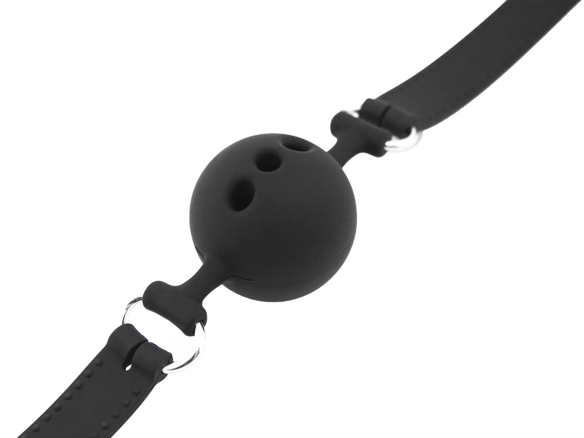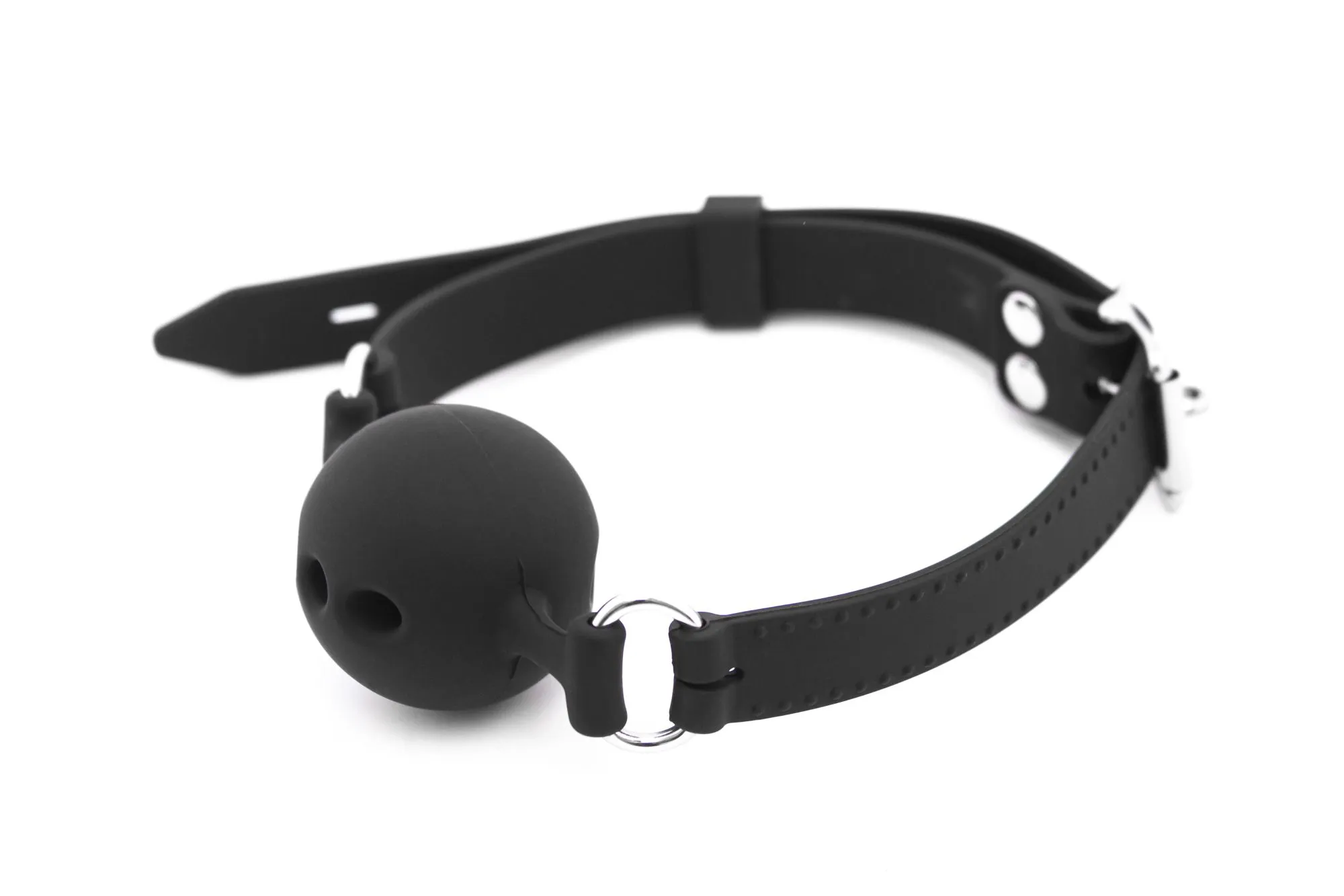 В шарике есть отверстия, поэтому ничто не затруднит дыхание во время игры. Ремешок можно регулировать по размеру.