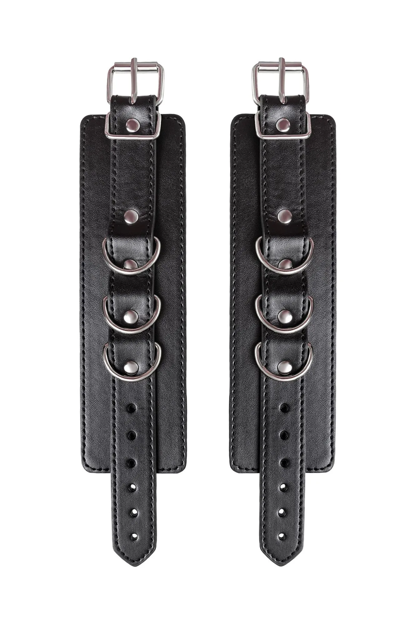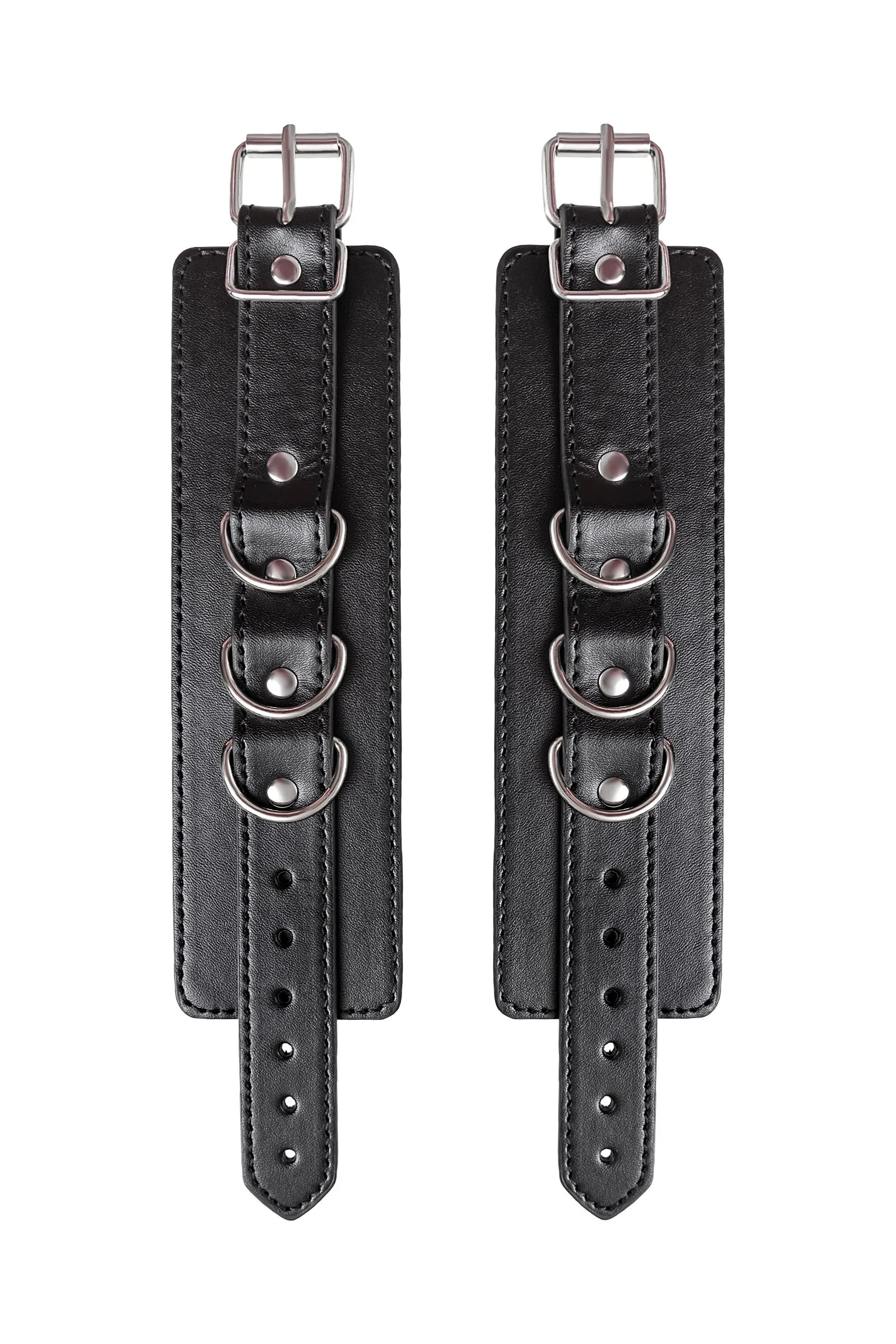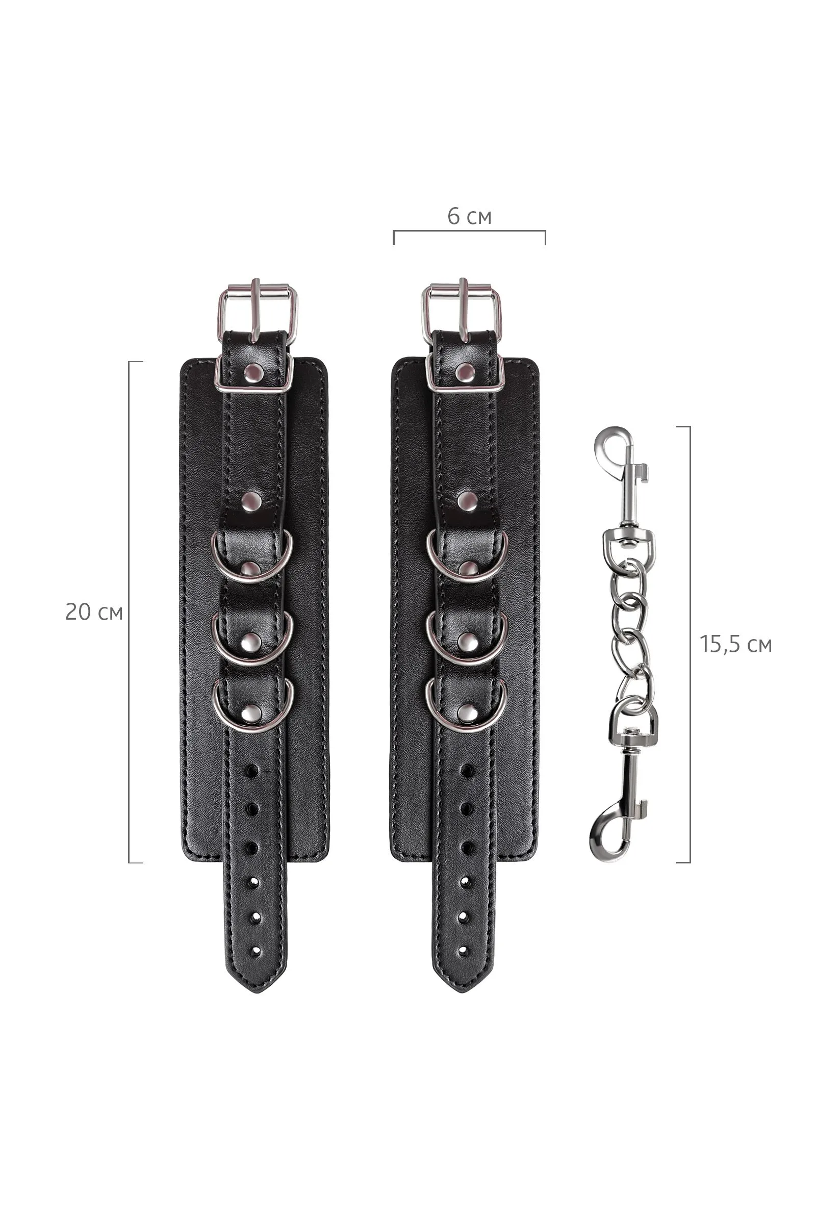Черные наручники с металлической отделкой – брутальные ограничители свободы. К тому же, они на самом деле весьма жестко обхватывают руки и надежно соединяют их между собой цепочкой на карабинах. Три кольца для крепления позволяют дополнить наручники аксессуарами и использовать различные варианты фиксации. Длина наручников позволяет использовать их практически на любой размер рук. Отрегулировать размер и силу обхвата легко с помощью ремешка и металлической пряжки. Эти наручники с металлической отделкой – настоящий стиль и функционал. Теперь Доминант покажет, что значит грубое обращение и полный контроль над свободой. Материал: PU кожа, металл Цвет: черный Длина: 20 см Ширина: 6 см Длина сцепки: 15,5 см