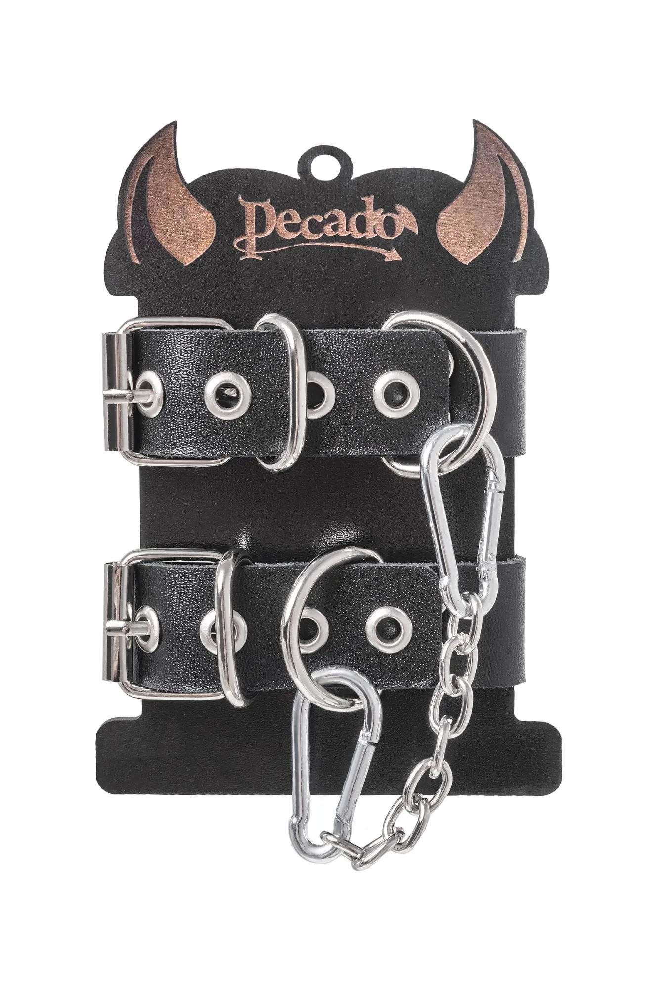 Брутальные наручники из одного ремешка от Pecado – отличный подарок партнеру к любому случаю. Во-первых, они незаменимая вещь для жестких ролевых игр. Во-вторых, отличный аксессуар-браслет на руку для повседневного и тематического look-а. Сексуальный атрибут изготовлен российским производителем. Специальная технология выделки кожи обеспечивает хорошую износостойкость. Черный материал прекрасно прилегает к телу и не оставляет следов. Подходят и мужчинам, и женщинам. Наручники декорированы большими стальными кольцами. Металлическая фурнитура высокого качества обеспечивает надежную фиксацию. Манжеты фиксируются между собой благодаря съемной, короткой цепочке. При желании ее можно заменить на другой необходимый аксессуар. ● 100% натуральная кожа. ● Ручная работа. ● Износостойкий, тактильно приятный материал. ● Надежная высококачественная фурнитура. ● Универсальный размер. ● Длина ремешка – 23,5 см, ширина ремешка - 2,5 см, длина сцепки – 14 см.