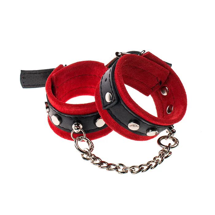 Такие игры с элементами БДСМ способны добавить острых ощущений в интимную близость пары и вдохновить на поиск новых источников удовольствия. Наручники сделаны из замши и соединены между собой металлической цепочкой на карабинах. Наручники регулируются по размеру ремешками с пряжками.