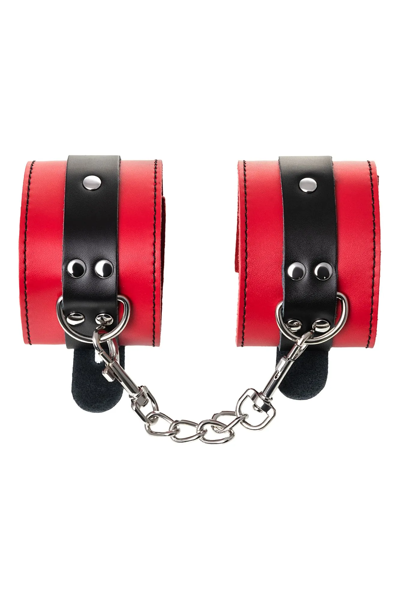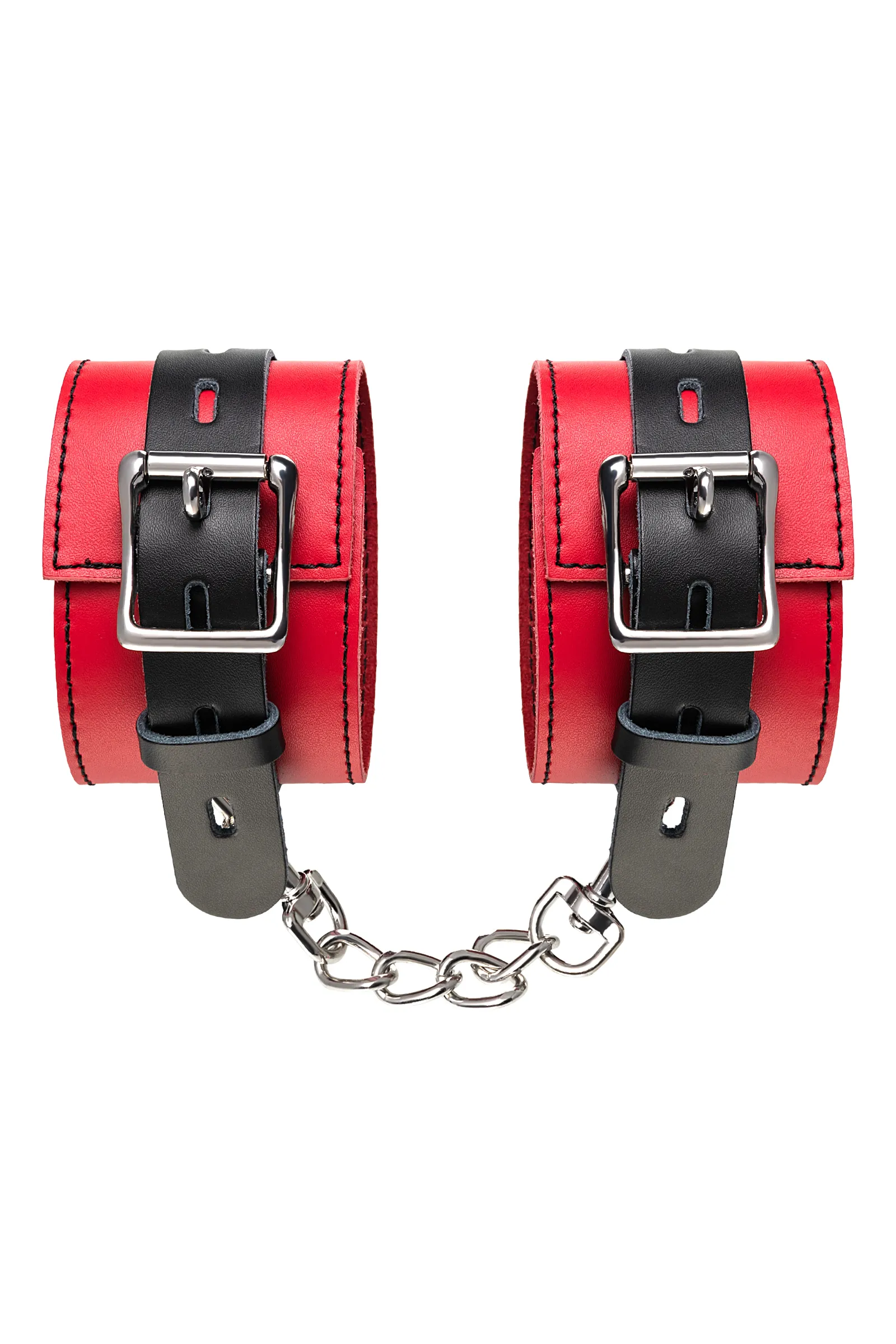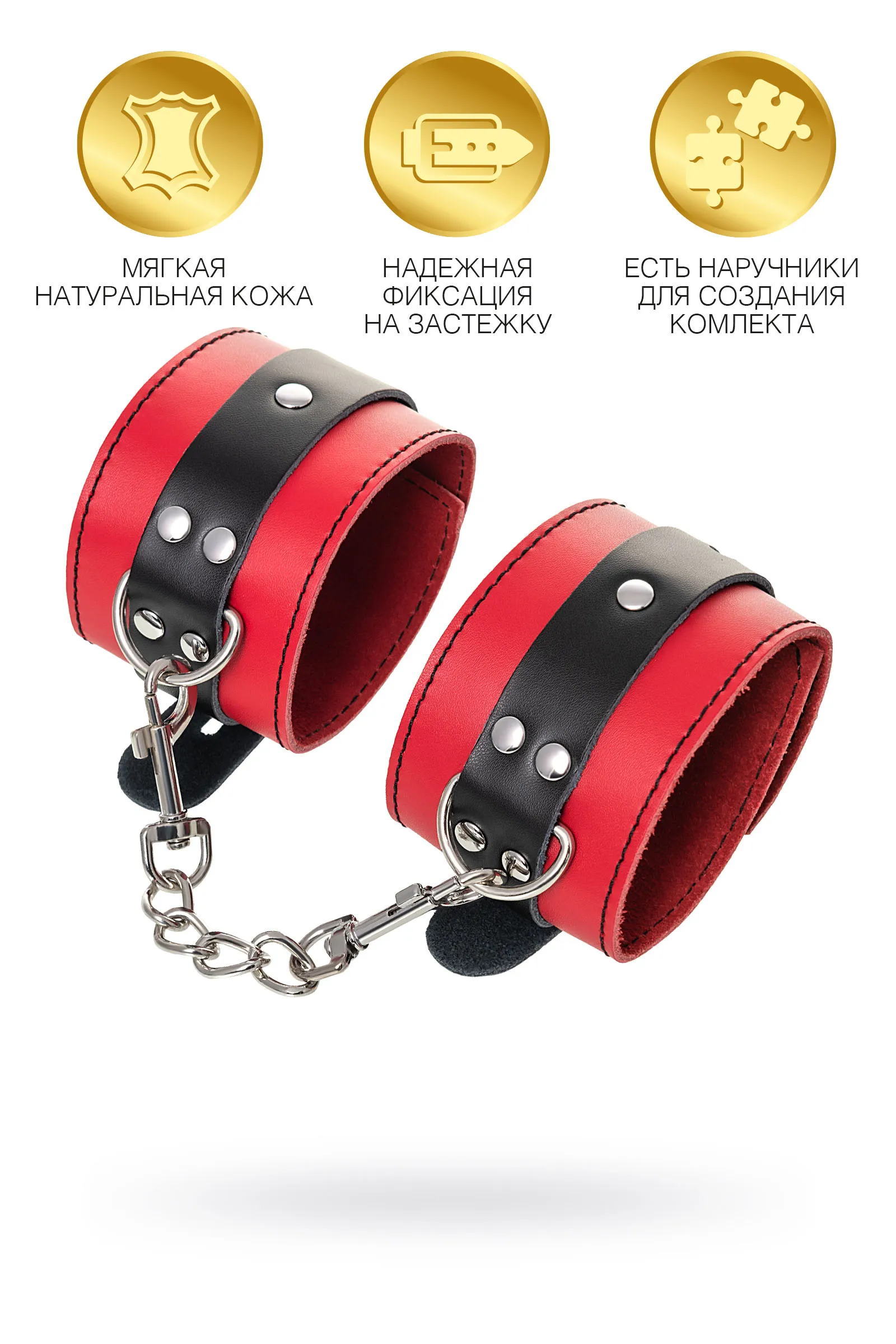 Оковы на ноги Оковы на ноги - волнующий воображение аксессуар, ведь это способ зафиксировать ноги партнера и получить полный доступ к его телу. Но не забудьте про стоп-слово. Оковы из мягкой натуральной кожи сочетают в себе элементы, возбуждающие страсть и фантазию: красный и черный цвета и отделка металлическими элементами. В них будет комфортно подчиняться и ощущать ограничение свободы действий. Не натирают и имеют надежную степень фиксации. Размер легко регулируется металлической пряжкой. С помощью металлической цепочки и карабинов можно фиксировать ноги вместе, либо дополнить игру цепочкой и сковать ноги в широко разведенном положении. Попробуйте полный комплект состоящий из ошейника, наручников и оков на ноги чтобы воплотить самые смелые фантазии. Эта пара - отличный вариант для начинающих в БДСМ-играх. Так почему бы не открыть для себя что-то новое? Длина оков 28 см Ширина оков 6 см Длина сцепки 15,5 см Материал: кожа, металл В фотосессии на модели использованы пэстис Theatre 705006