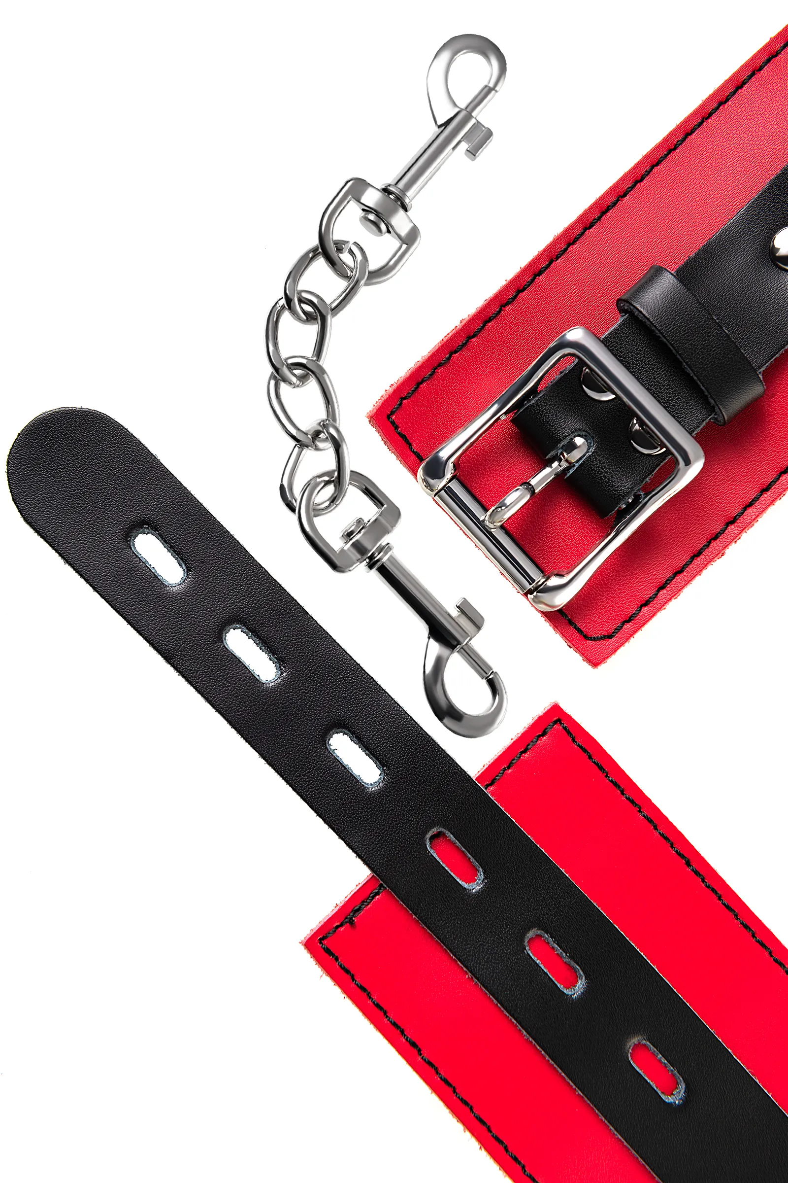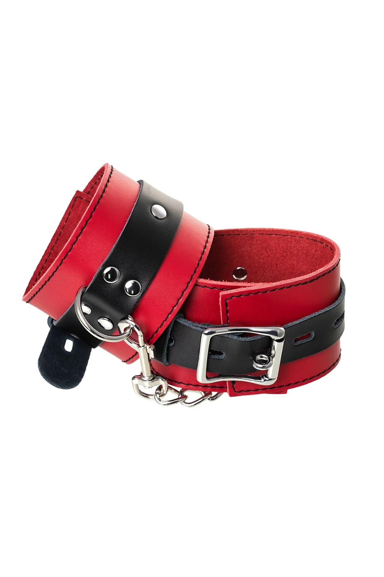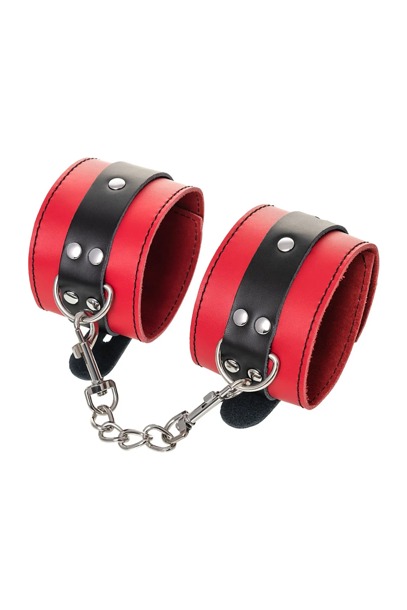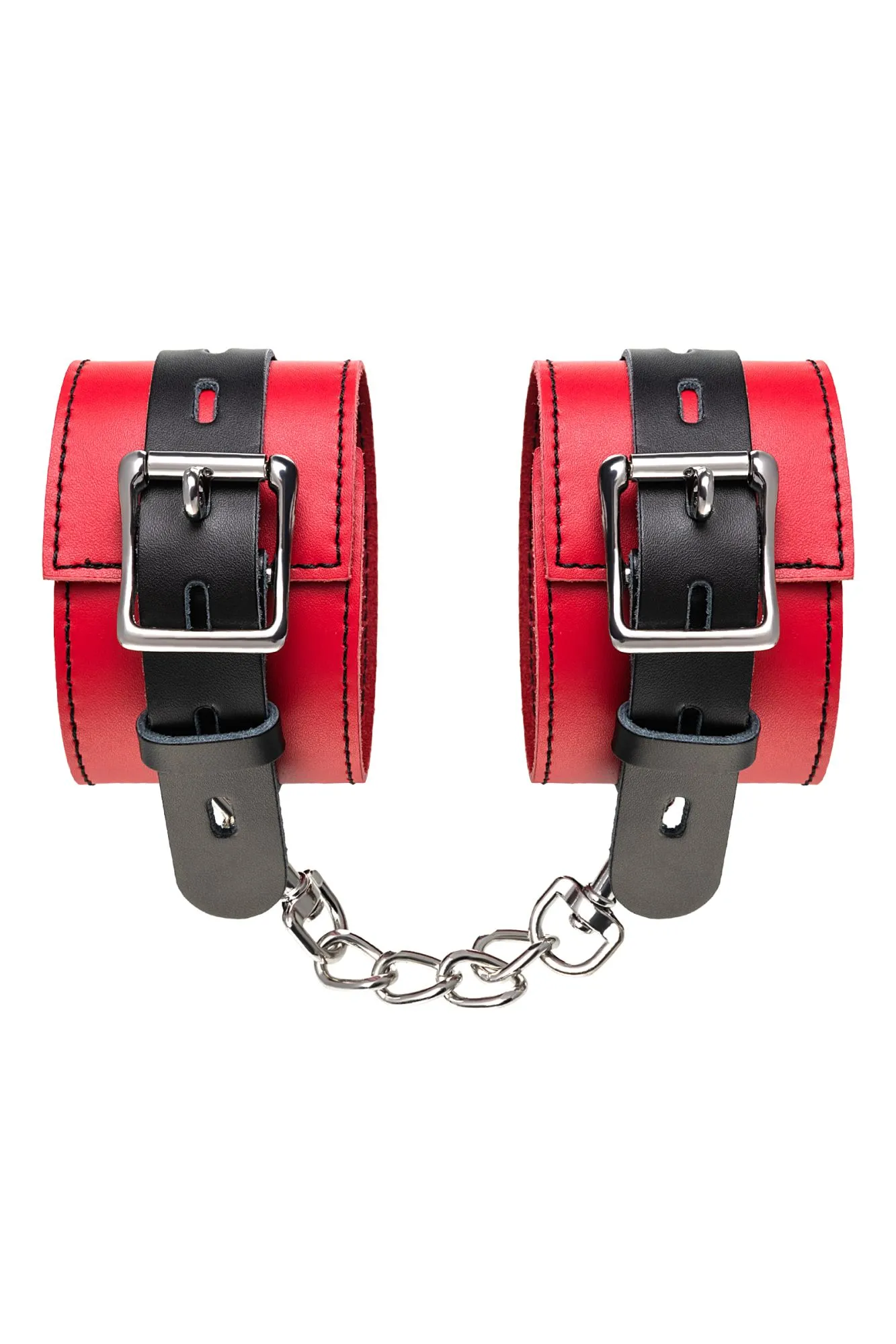 Оковы на ноги Оковы на ноги - волнующий воображение аксессуар, ведь это способ зафиксировать ноги партнера и получить полный доступ к его телу. Но не забудьте про стоп-слово. Оковы из мягкой натуральной кожи сочетают в себе элементы, возбуждающие страсть и фантазию: красный и черный цвета и отделка металлическими элементами. В них будет комфортно подчиняться и ощущать ограничение свободы действий. Не натирают и имеют надежную степень фиксации. Размер легко регулируется металлической пряжкой. С помощью металлической цепочки и карабинов можно фиксировать ноги вместе, либо дополнить игру цепочкой и сковать ноги в широко разведенном положении. Попробуйте полный комплект состоящий из ошейника, наручников и оков на ноги чтобы воплотить самые смелые фантазии. Эта пара - отличный вариант для начинающих в БДСМ-играх. Так почему бы не открыть для себя что-то новое? Длина оков 28 см Ширина оков 6 см Длина сцепки 15,5 см Материал: кожа, металл В фотосессии на модели использованы пэстис Theatre 705006