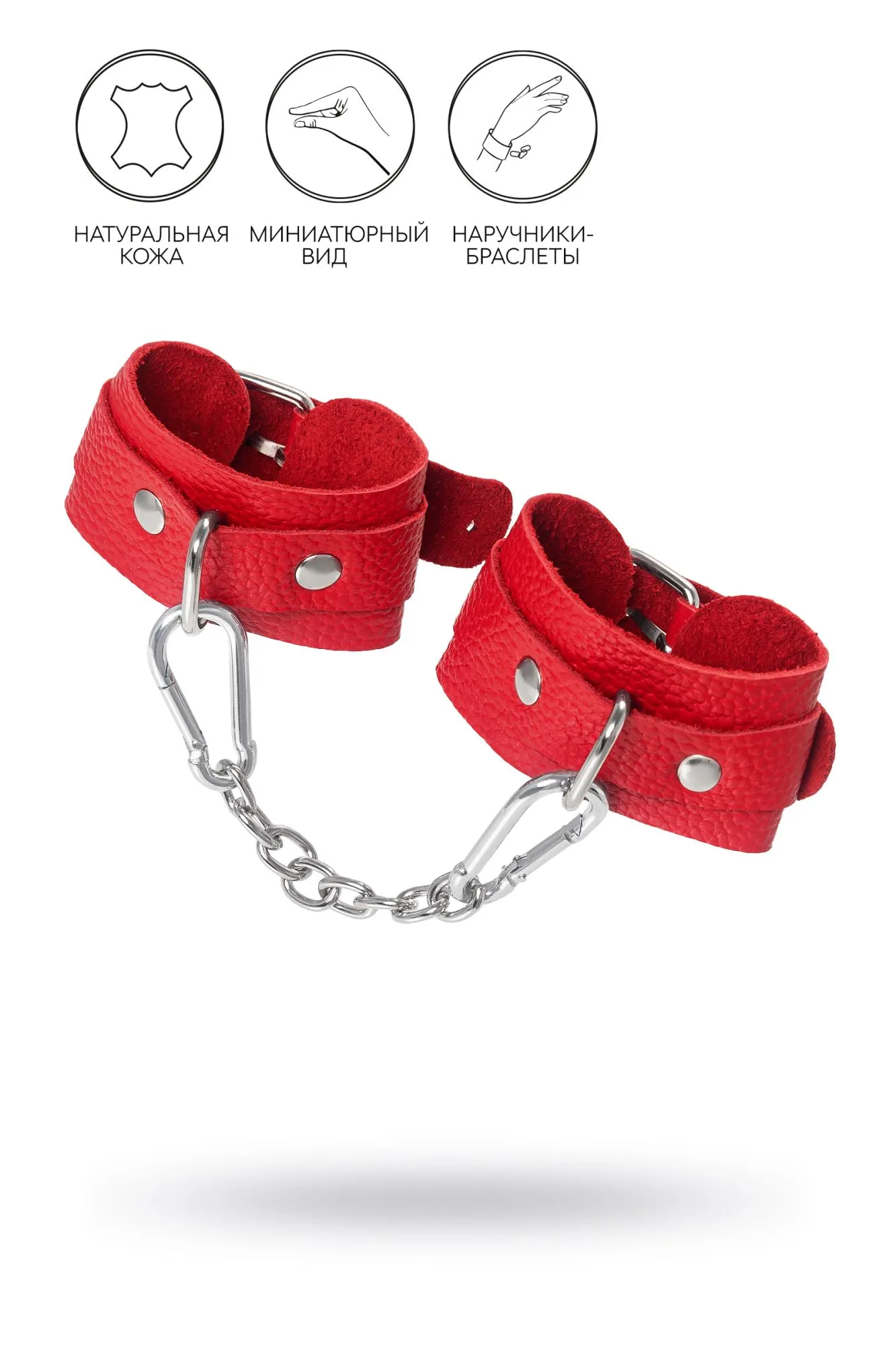 Ищите наручники для миниатюрной ручки? Тогда обратите внимание на эту модель от российского производителя Pecado. Они идеально созданы для обладательниц узкого запястья. Каждый элемент аксессуара изготовлен полностью вручную. Мягкий, красный материал нежно обхватывает руку и оставляет только приятные ощущения от контакта с телом. Аксессуар декорирован качественной фурнитурой, благодаря которой, при необходимости, его легко снять. Соединяются между собой с помощью короткой стальной цепочки и двух колец с карабинами. При правильном использовании не оставляют следов на теле. А особый аромат натуральной кожи придает пикантности сексуальному атрибуту. Подходит как для начинающих пар, так и для ценителей БДСМ-игр. Погрузитесь в мир пикантных удовольствий! Вместе с Pecado. ● 100% натуральная кожа. ● Ручная работа. ● Износостойкий, тактильно приятный материал. ● Надежная высококачественная фурнитура. ● Универсальный размер. ● Длина манжет – 15 см, ширина манжет – 4 см, длина сцепки – 14 см.