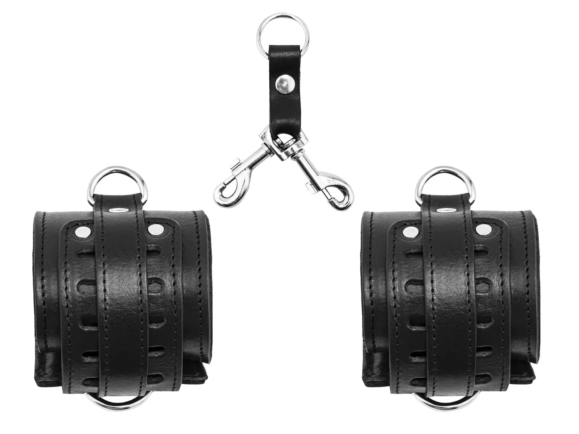 Данная модель изготовлена из натуральной кожи черного цвета. Наручники оснащены удобными фиксирующими ремешками, каждый из которых фиксируется протягиванием через специальное кольцо. Мягкая подкладка (пена) обеспечит комфорт и безопасность.