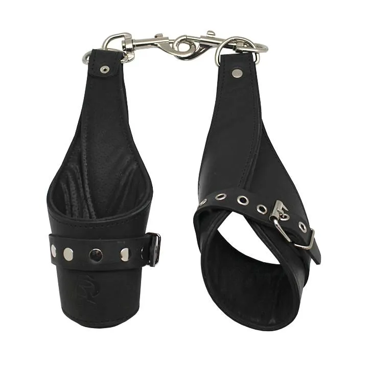 Наручи для подвешивания от фирмы "Подиум" помогут Вам обездвижить партнера и насладиться его беспомощностью перед Вами. Наручники выполнены из натуральной кожи и украшены металлическими заклепками. У них есть мягкая подкладка из синтетической пены, так что они не нарушат кровообращение и не повредят кожу. Анатомическая конструкция при правильном использовании исключает вероятность получения травмы. Наручники регулируются по размеру, фиксируются удобным ремешком.