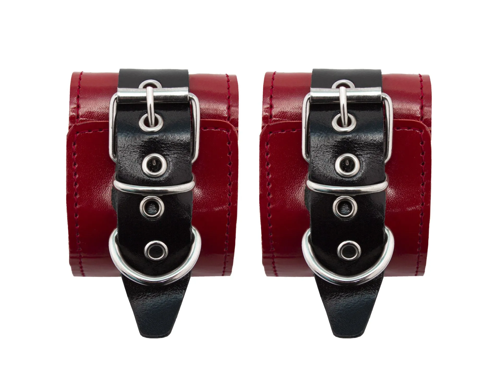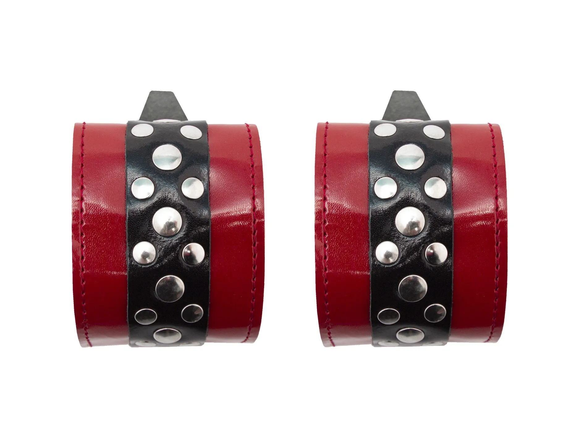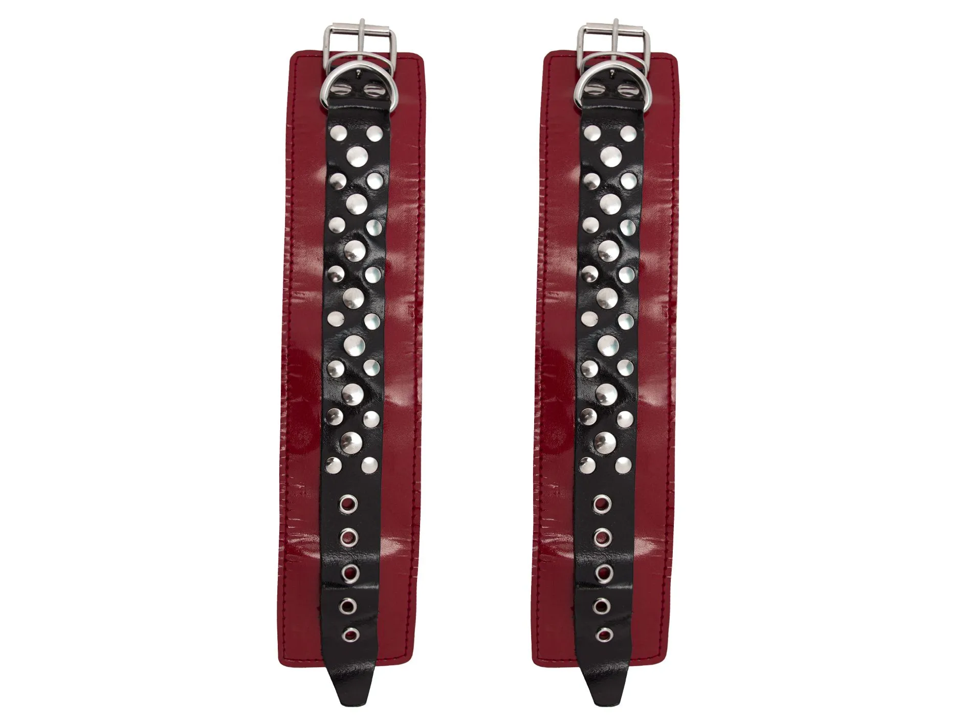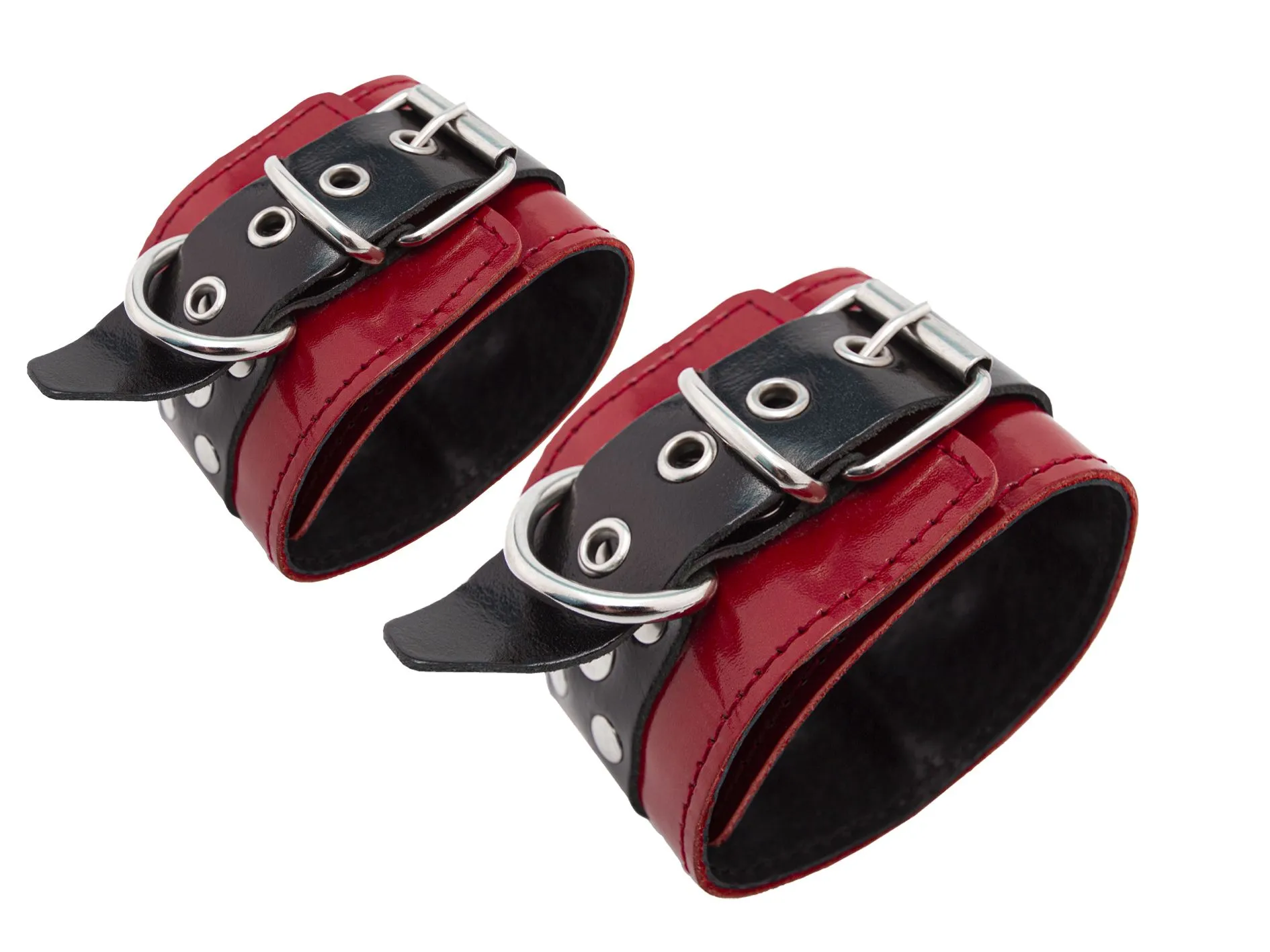 Наручи от фирмы "Подиум" помогут Вам обездвижить партнера и насладиться его беспомощностью перед Вами. Они выполнены из натуральной лакированной кожи и украшены металлическими заклепками. У наручников есть мягкая подкладка из пены, так что они не нарушат кровообращение и не повредят кожу. Также у них есть D-образные кольца, к которым можно будет присоединять другие бондажные аксессуары. Наручники регулируются по размеру, фиксируются удобным ремешком.