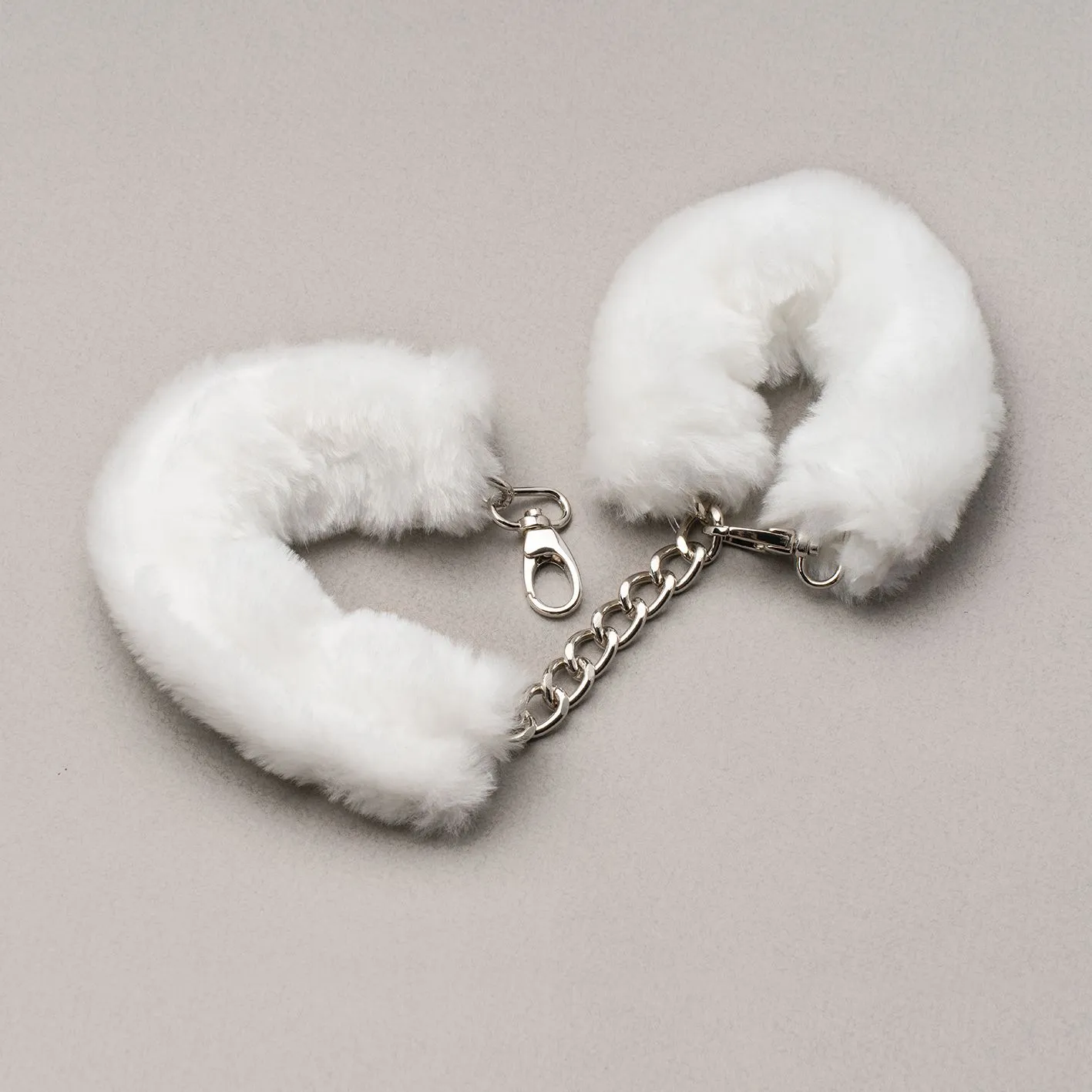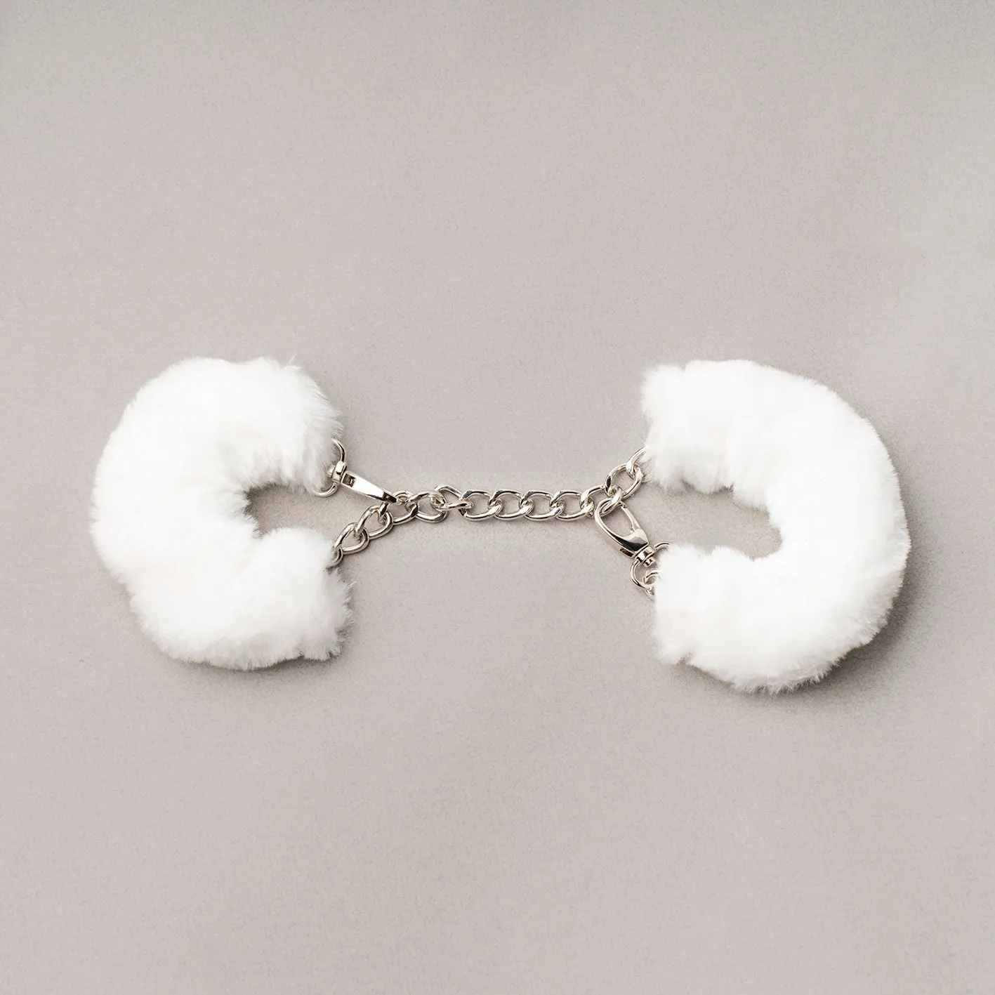 Универсальные наручники со съемными меховыми чехлами. Соединены алюминиевой цепочкой с большими звеньями. Возможна регулировка под любой размер запястья. Теперь можно очен ь легко и быстро как отстегнуть, так и пристегнуть партнера.
