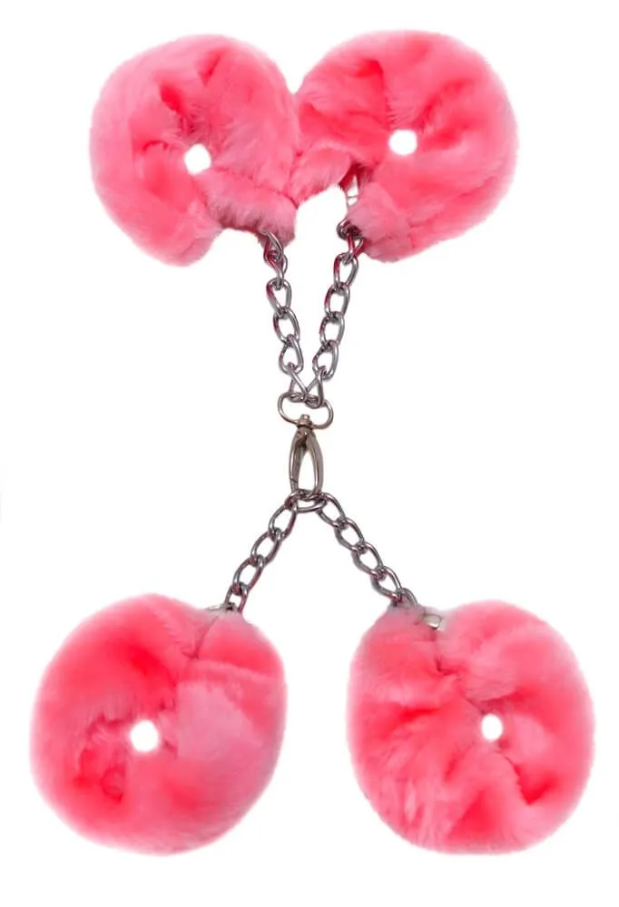 Универсальные наручники и поножи, сделанные российским производителем I Sexy, имеют съемные меховые чехлы и надежную цепочку с большими звеньями. Оковы регулируются под любой размер.