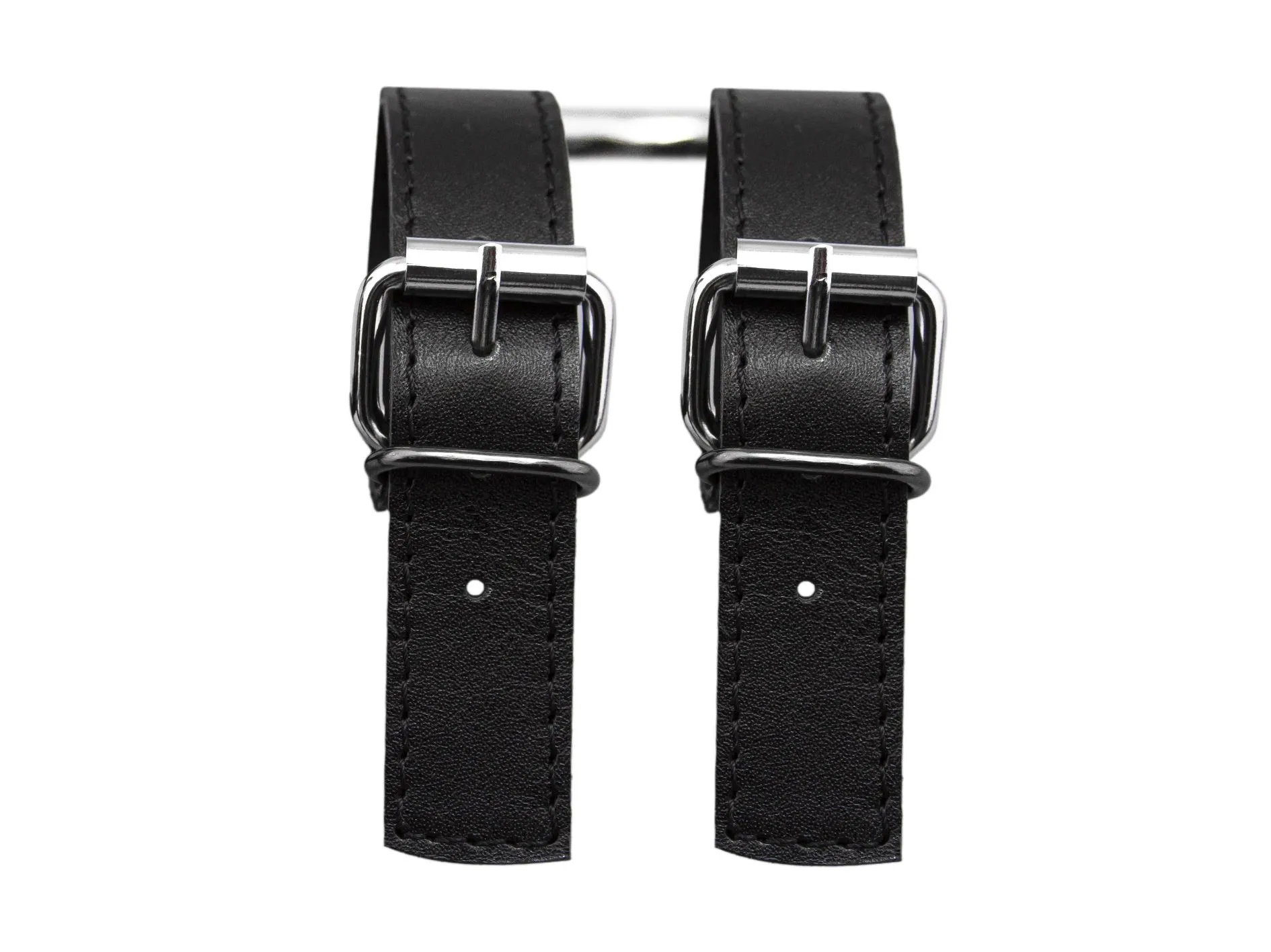 Наручи выполнены из натуральной кожи черного цвета и между собой соединены металлическим кольцом. Их можно использовать как сексуальное и дерзкое украшение, которое дополнит Ваш ролевой эротический костюм. Или же можно соединить их при помощи цепи или карабина, чтобы они смогли зафиксировать руки Вашего партнера. Невозможность двигать руками обострит все чувства партнера, делая его особенно чувствительным ко всем прикосновениям. Наручи разнообразят Ваши интимные игры и позволят испытать новые ощущения во время секса. Наручники регулируются по размеру.