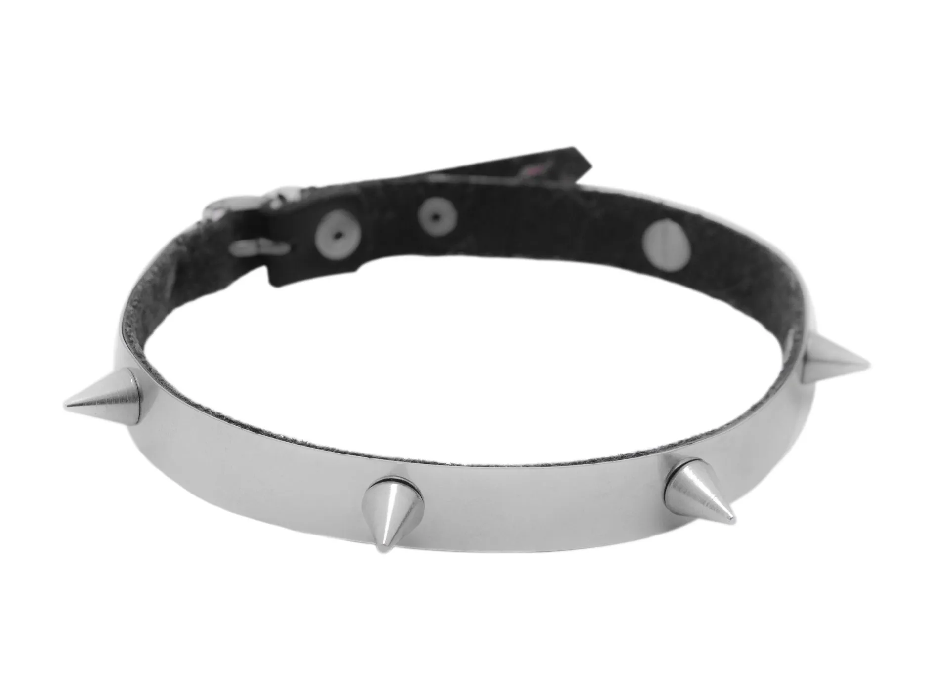 Ошейник выполнен из металла и декорирован металлическими шипами. Мягкая подкладка делает ошейник удобным и комфортным для ежедневной носки.