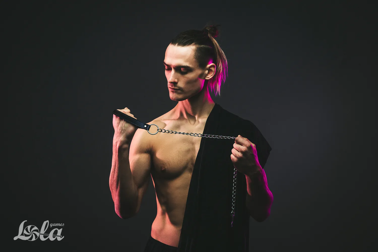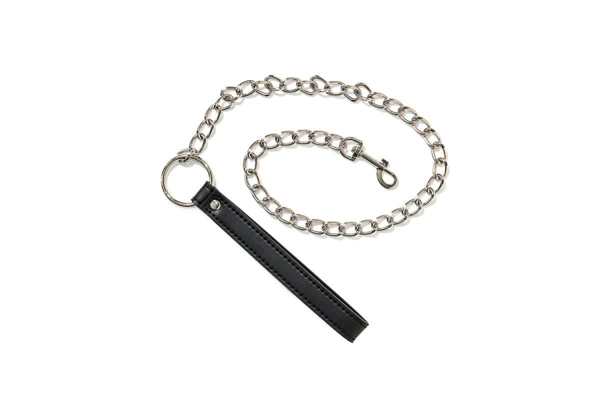 Металлический поводок для ошейника с черной ручкой. Раб должен знать свое место. Он должен сидеть на привязи, как домашний питомец. Должен уметь выполнять команды. А чтобы так все и было нужен хороший ошейник БДСМ. Так что раб будет на привязи и всегда можно дернуть поводок, чтобы питомец прильнул к вашим ногам. Материал: ПВХ Длина поводка: 80 см.
