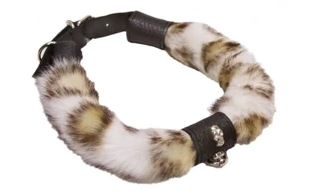 Ошейник сделан из сочетания черной кожи и меха, поэтому он не вызовет дискомфорта при его ношении, а, наоборот, подарит только приятные ощущения. Застегивается он при помощи регулируемого ремешка с пряжкой.
