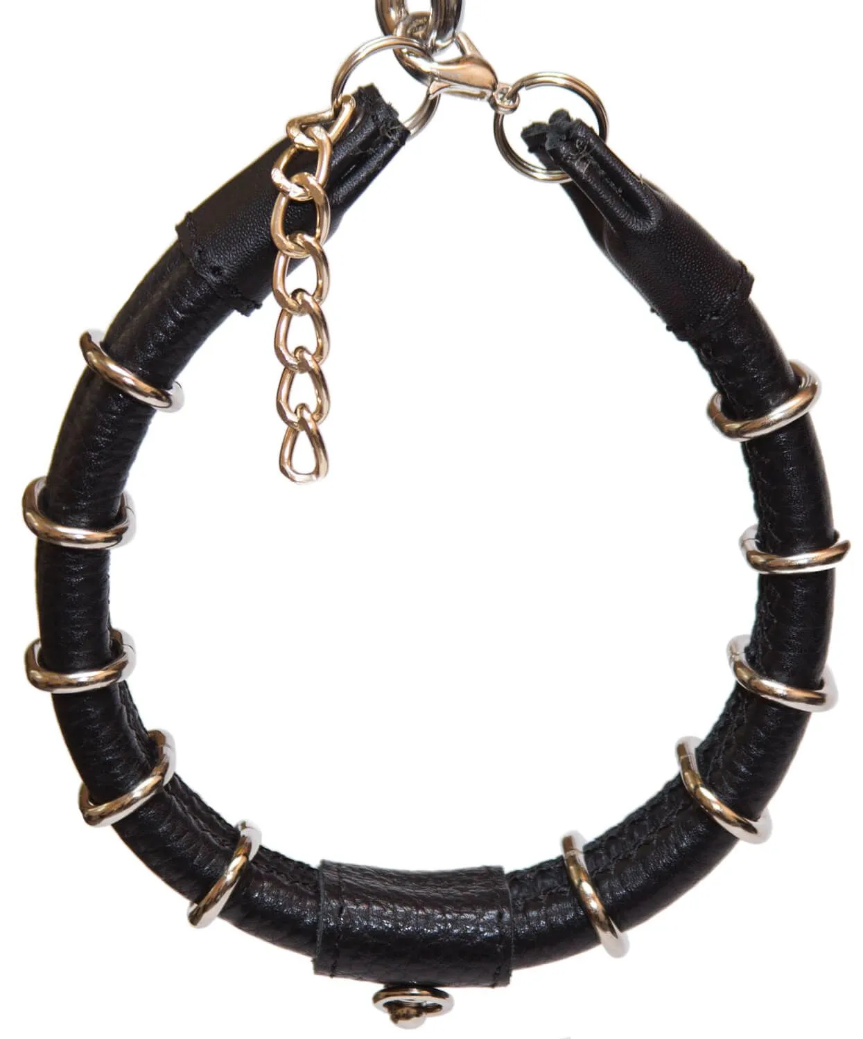 Поклонникам ролевых интимных игр придется по вкусу этот черный кожаный ошейник. По всей длине он украшен металлическими элементами, благодаря которым он выглядит невероятно эффектно. У ошейника есть небольшое колечко, за которое его можно пристегнуть к поводку (в комплект не входит) за небольшой карабин, чтобы добавить играм еще большее разнообразие. Изделие прекрасно подойдет для БДСМ развлечений и позволит реализовать самые нескромные сексуальные фантазии.