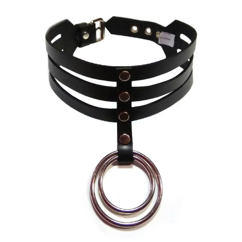 Этот прекрасный чокер от бренда Fetfox Studio выполнен из трех кожаных ремешков, соединенных между собой полоской кожи, и украшен металлическими клепками и двумя кольцами. Благодаря его особому дизайну он станет великолепным украшением, которое подчеркнет Ваш индивидуальный стиль и акцентирует внимание на прекрасной шейке. При необходимости Вы сможете присоединить к металлическому кольцу поводок или другие аксессуары. Это заметно разнообразит Ваши любовные игры и позволит испытать новые будоражащие ощущения.