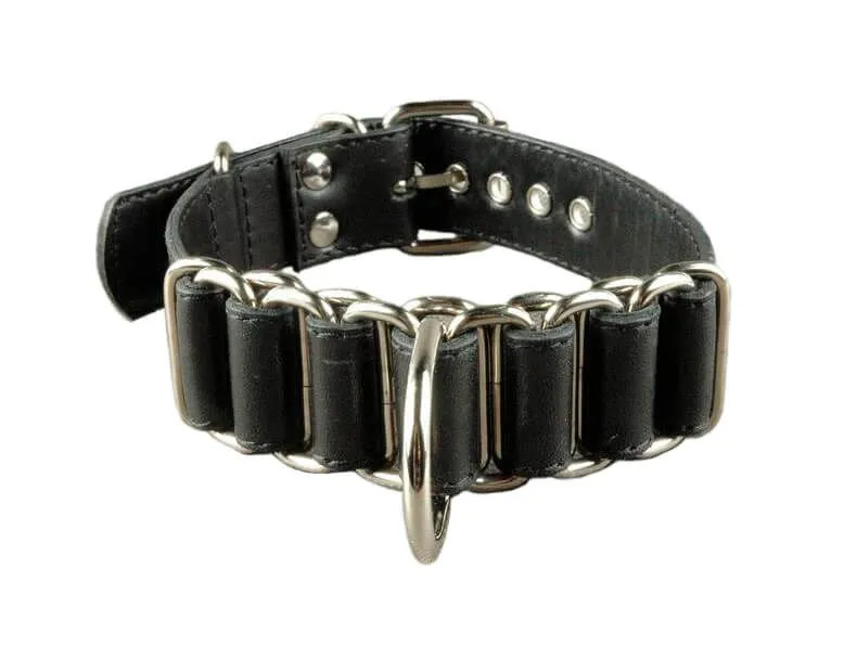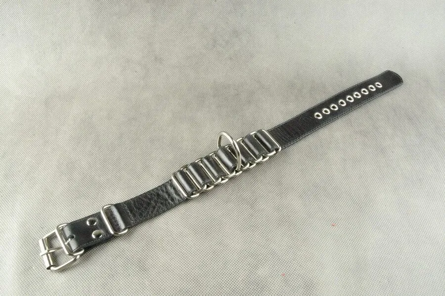 Ошейная окова от российского бренда Beastly сделана из металлических колец и оплетающей их натуральной кожи черного цвета. Получившееся плетение будет прекрасно смотреться на шее, подчеркивая ее плавные изгибы. Посередине ошейника есть крупное полукольцо, к которому можно будет присоединить поводок или другие бондажные аксессуары. Это позволит разнообразить игры с элементами БДСМ и расширить их новыми сценариями.