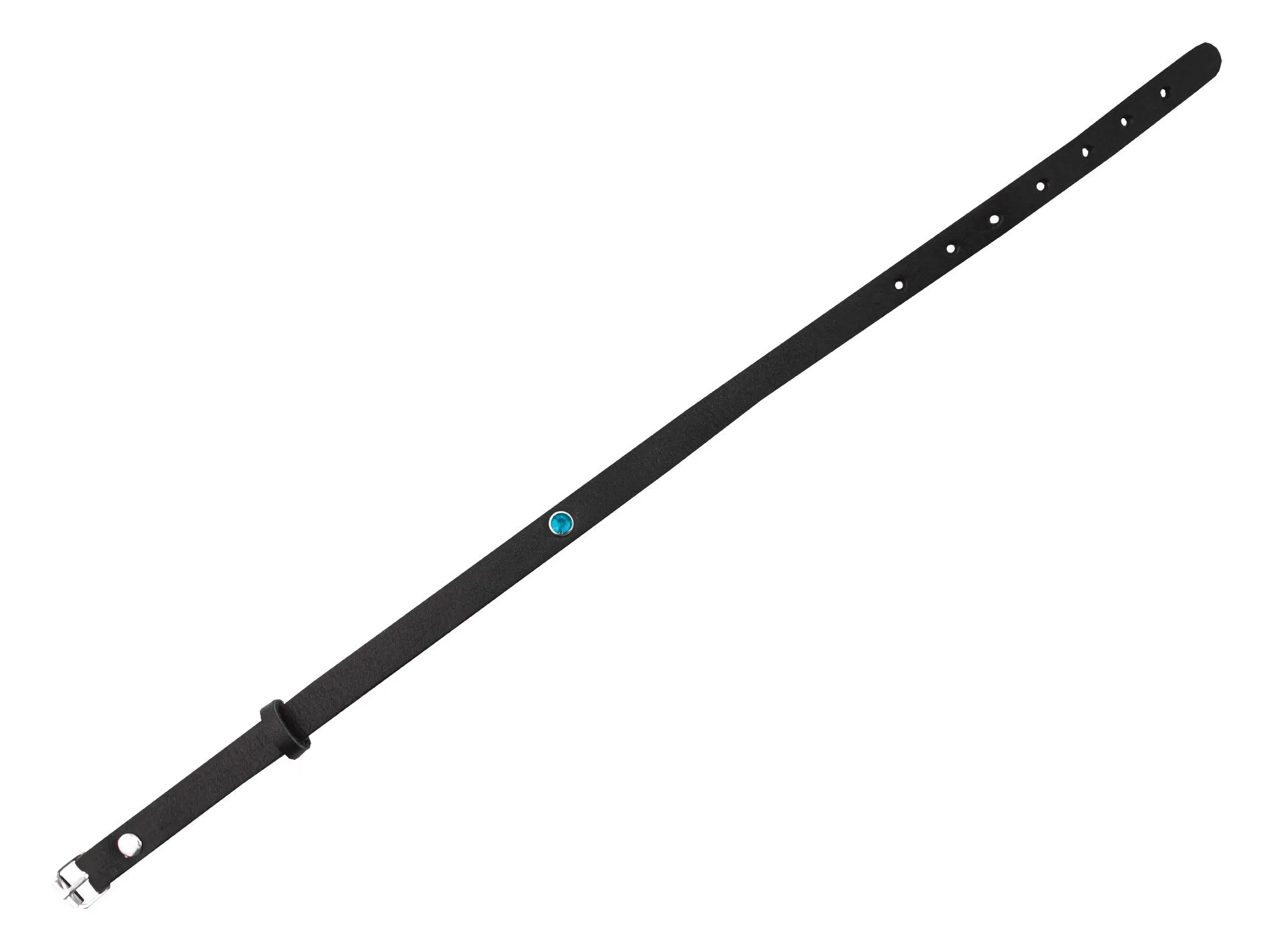 Чокер черного цвета с синей стразой из натуральной кожи будет прекрасным украшением, которое подчеркнет Ваш индивидуальный стиль и акцентирует внимание на прекрасной шейке. Также он сможет послужить Вам во время ролевых игр с элементами БДСМ, это заметно разнообразит Ваши любовные игры и позволит испытать новые будоражащие ощущения.