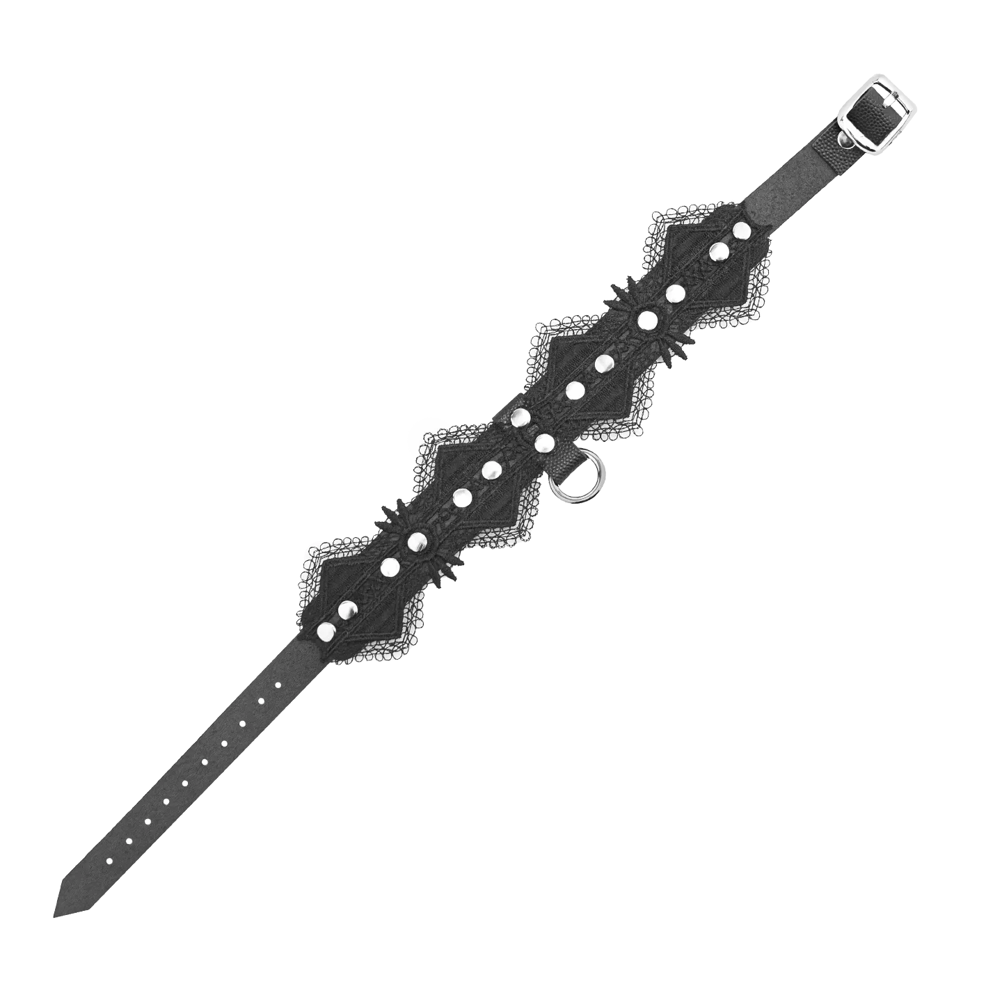 Чокер выполнен из натуральной кожи и декорирован мягким кружевом. Такой аксессуар можно носить с повседневной одеждой, чтобы придать своему образу дерзости и сексуальности. Также он будет отлично смотреться вместе с ролевым эротическим костюмом во время любовной игры с партнером. Чокер акцентирует внимание на прекрасной шейке и подчеркнет страстность Вашей натуры. Длина чокера регулируется при помощи ремешка с пряжкой, поэтому Вы сможете подогнать его под нужный размер. Есть колечко, чтобы при необходимости пристегнуть поводок - всё для простора вашей фантазии.