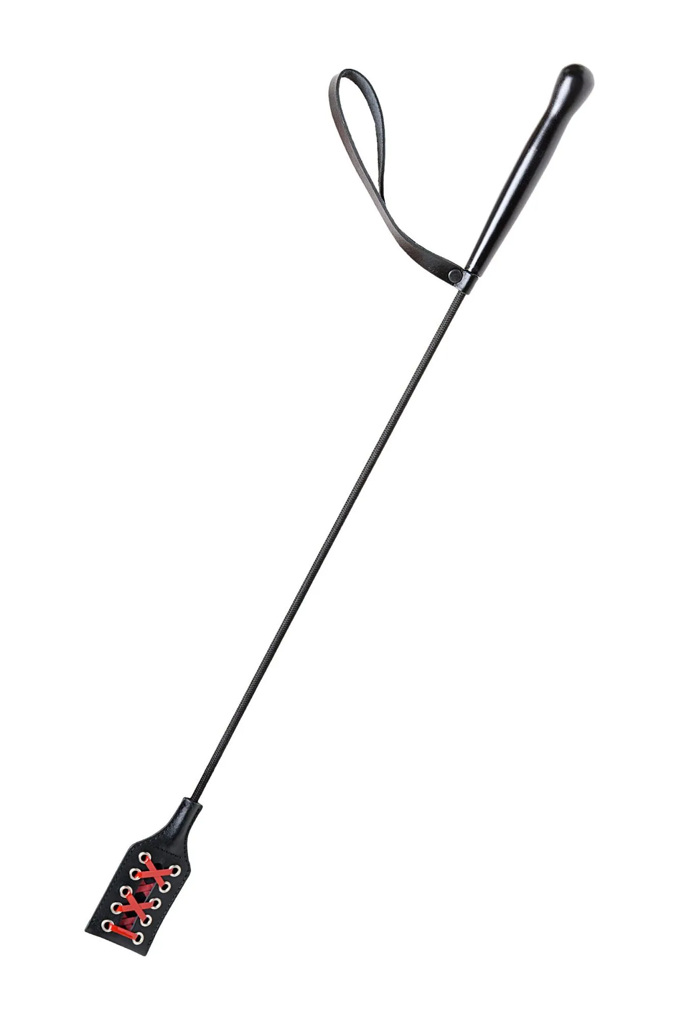 Порка – одно из наиболее частых наказаний в ролевых играх на тему воспитания. И если Вы испытываете наслаждение от такого рода сексуальных игр, так пусть это будет красиво и с роскошью, чтобы удовольствие захлестнуло не только от жгучего тактильного контакта ударными, но и от внешнего вида предмета. Стек от Sitabella– это девайс при помощи которого вы сможете осуществить любые сексуальные фантазии, будь то наказание, порка, психологическое доминирование и т.д. Длинный и умеренно гибкий стек приятно держать в руках, ощущая прилив возбуждения от собственной власти над партнёром. Девайс можно использовать как указку, управлять боттомом на расстоянии. Хлопушка стека выполнена из натуральной высококачественной кожи черного цвета и украшена переплетом из красной лаковой кожи. Ручка изготовлена из дерева и имеете удобную эргономичную форму. Гибкий хлыст, соединяющий хлопушку и рукоять, выполнен из прочного углепластика и имеет нейлоновое плетёное покрытие. Около рукояти имеется ремешок-петля для фиксации.