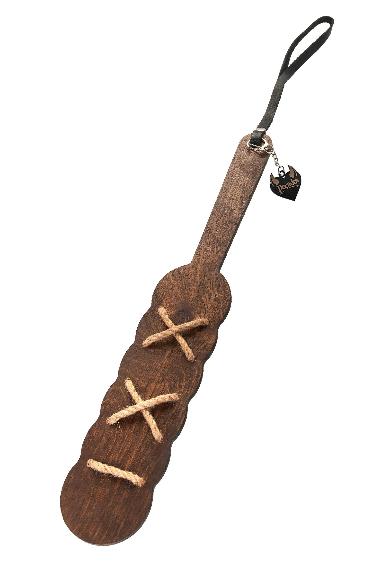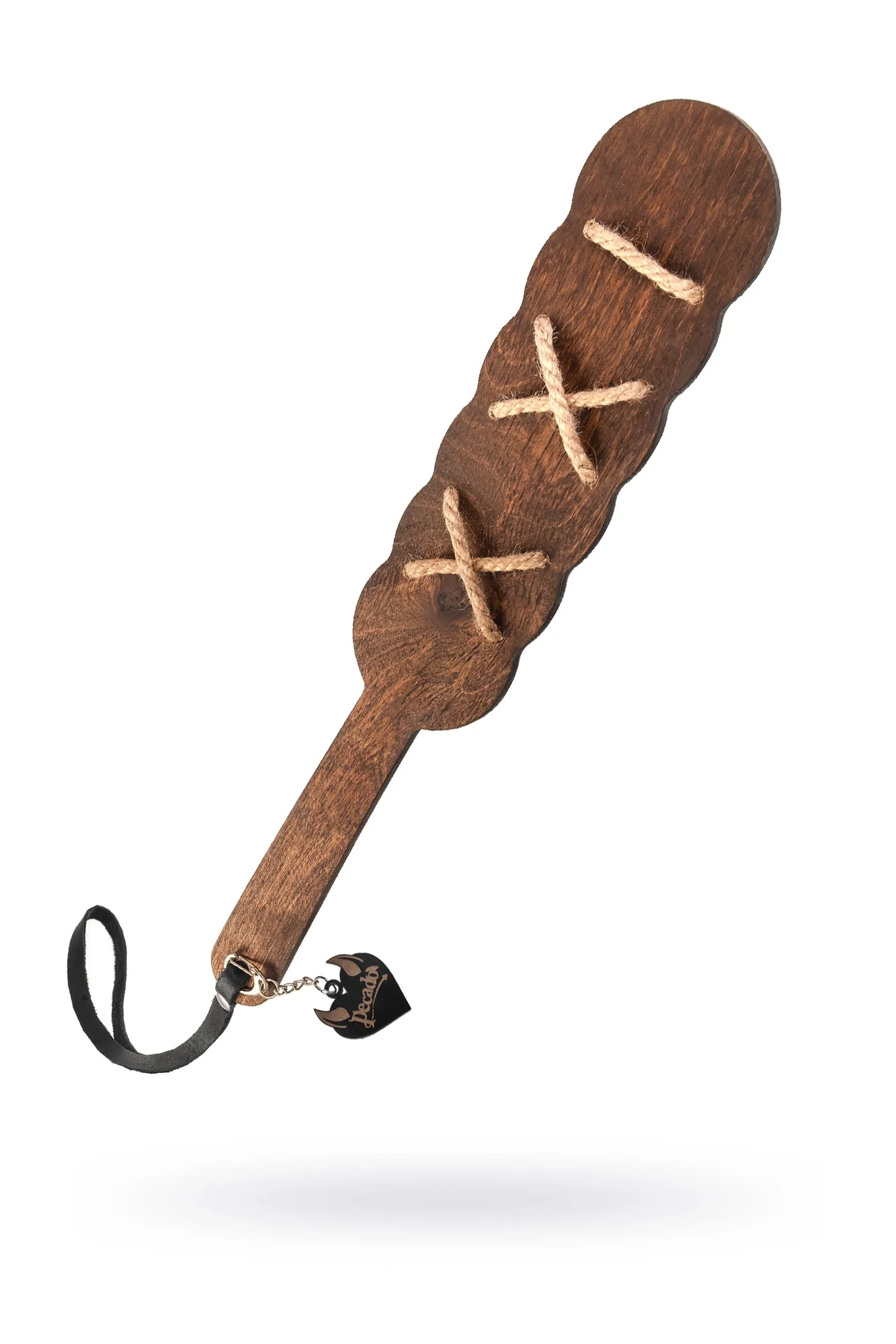 Готовы играть по-взрослому? Не бойтесь своих желаний! Оригинальный аксессуар, который без сомнения разнообразит ваши сексуальные игры. Деревянный паддл с джутовой шнировкой от Pecado BDSM подойдет как новичкам, так и профессионалам BDSM. Основание выполнено из натурального дерева, с джутовой шнуровкой в ударной части. Накажи своего партнёра! И помни… Лучший способ избавиться от искушения - поддаться ему! Pecado BDSM – российский бренд, использующий высококачественные материалы и надежную, проверенную временем фурнитуру. Все изделия изготавливаются вручную из натуральной кожи, безопасный и экологичный материал не оставляет повреждений на запястьях. Натуральная кожа, металлические крепления и ремешки дают уверенность в надежной фиксации, устойчивости к механическим нагрузкам и долговременном использовании. Общая длина — 38 см. Длина ударной части — 20 см. Ширина — 6,5 см.