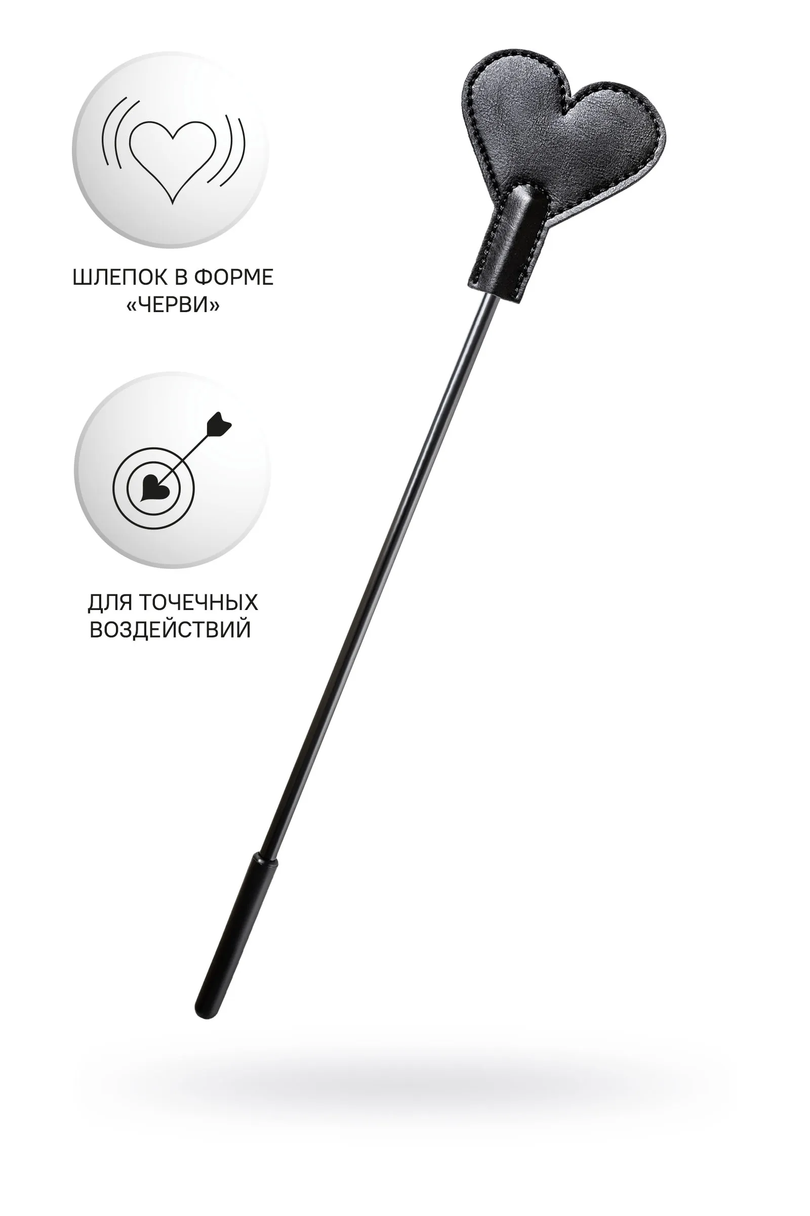 Доминирование и подчинение с помощью ограничения свободы — это еще не все, что вы можете сделать друг с другом. Черный стек с наконечником в форме сердечка-черви пригодится для ощутимого наказания непослушного партнера. Хлесткие точечные шлепки или указка – заигравшийся сабмиссив быстро поймет свою ошибку. Каждый неверный шаг, звук или поворот головы будет немедленно наказан с помощью жесткого стека из PU кожи. Сочетание напряжения, власти и элегантности – с этим стеком можно наказать провинившегося сабмиссива и еще раз продемонстрировать кто в паре главный. Материал: PU кожа Цвет: черный Общая длина: 35 см Длина наконечника: 4 см Ширина наконечника: 7 см