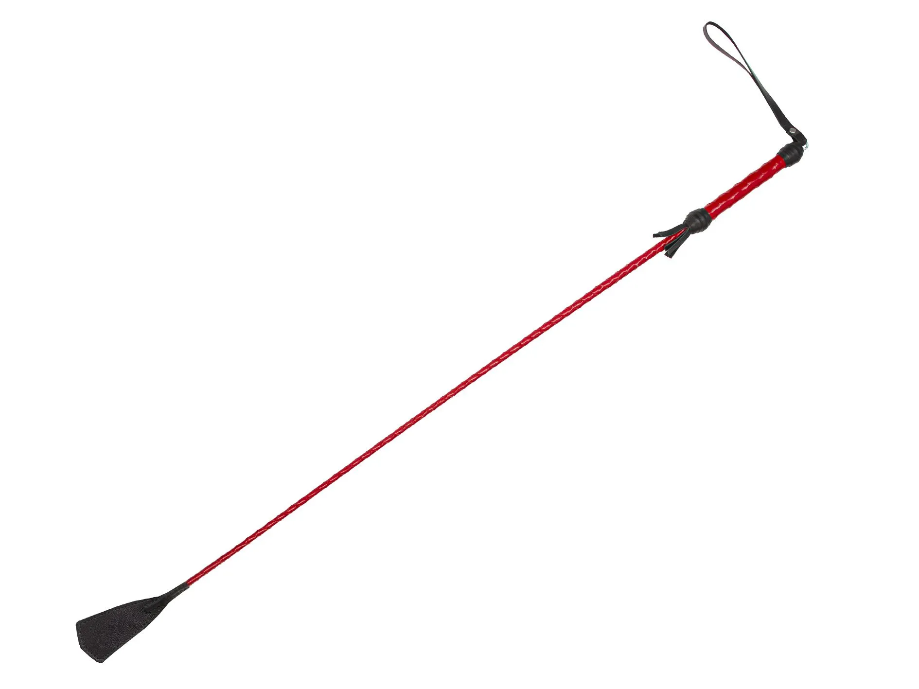 Гибкий хлыст этого стека оплетен лакированными полосками красного цвета и увенчан черным кожаным шлепком. Вы можете использовать данный БДСМ-атрибут для нежных поглаживаний или грубой порки. Также он идеально подойдет для использования в качестве указки. Подобные развлечения великолепно разнообразят любовные утехи, добавив в них некую изюминку и сделав их ярче и насыщеннее.