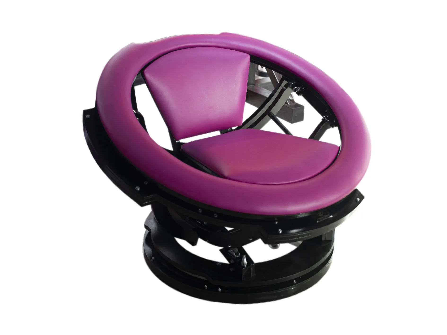 Свободное вращение в трех плоскостях с возможностью фиксации в одном положении. Сидение, спинка и кольцевой упор обиты мягкими подложками с высококачественным пенополиуретаном, обшитыми легко моющейся гипоаллергенной искусственной или натуральной кожей.