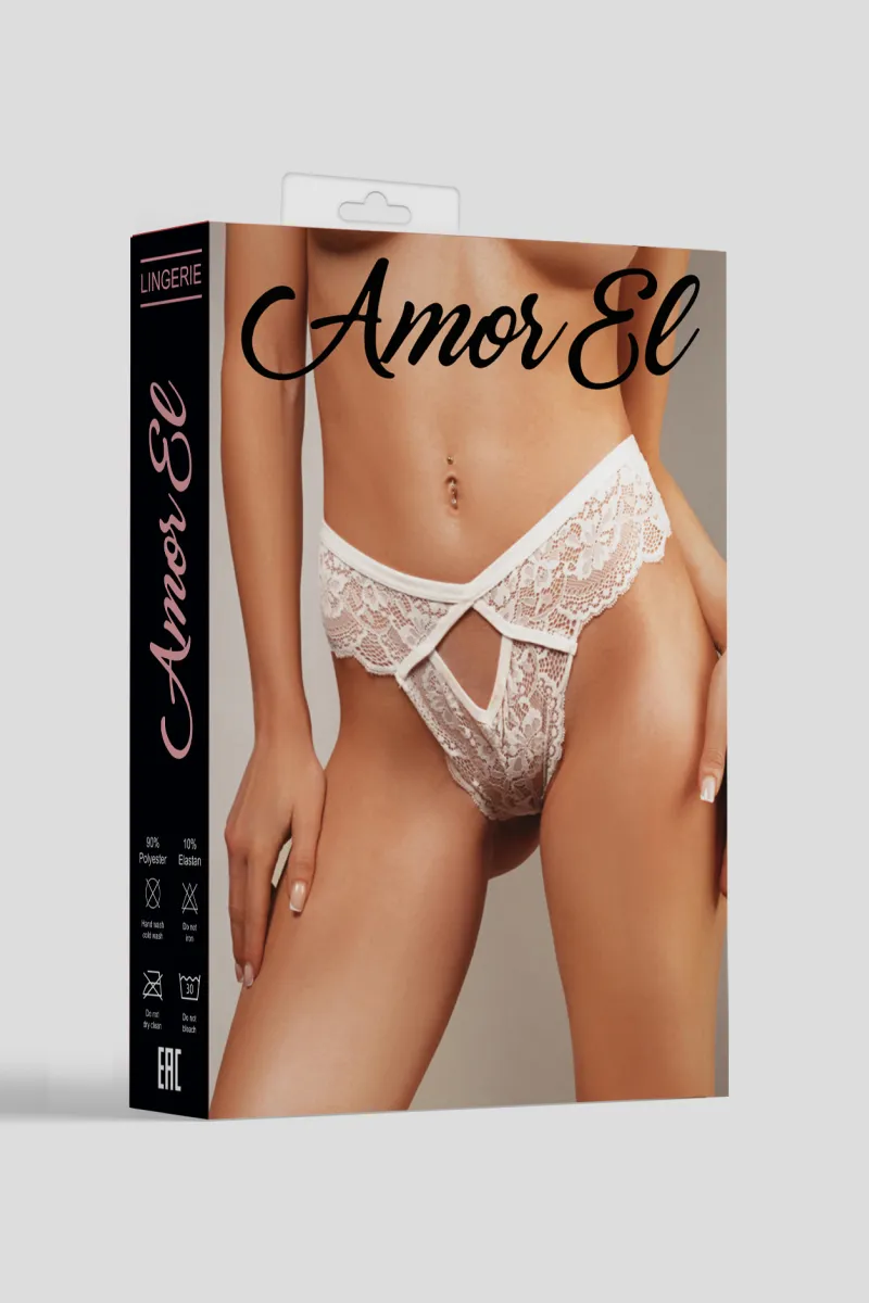 Белые кружевные трусики-танго с соблазнительными вырезами на передней и задней части. Эта модель трусиков добавит вашему образу нежность и романтичность.