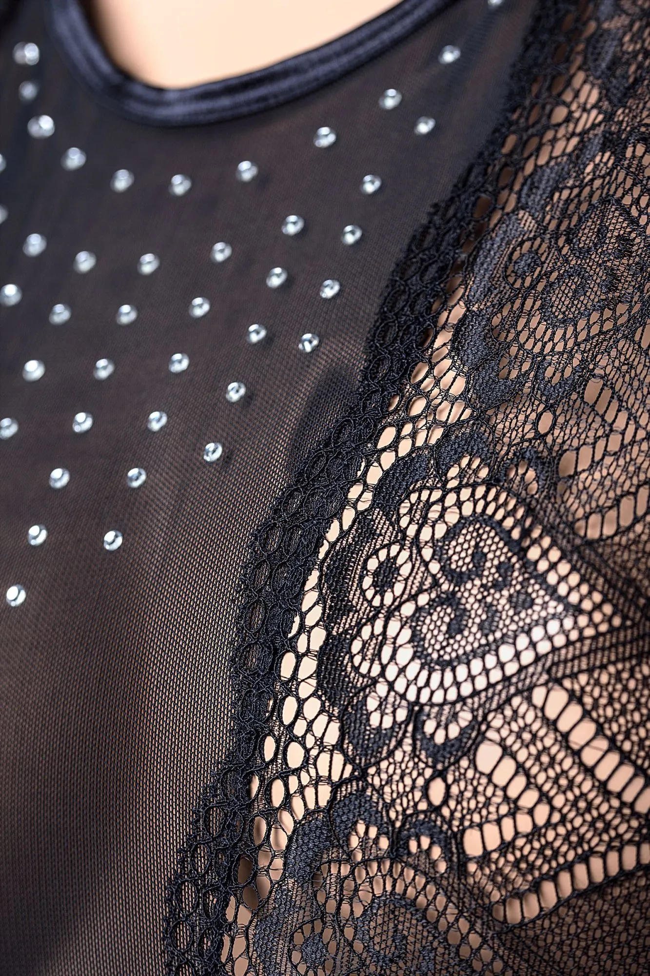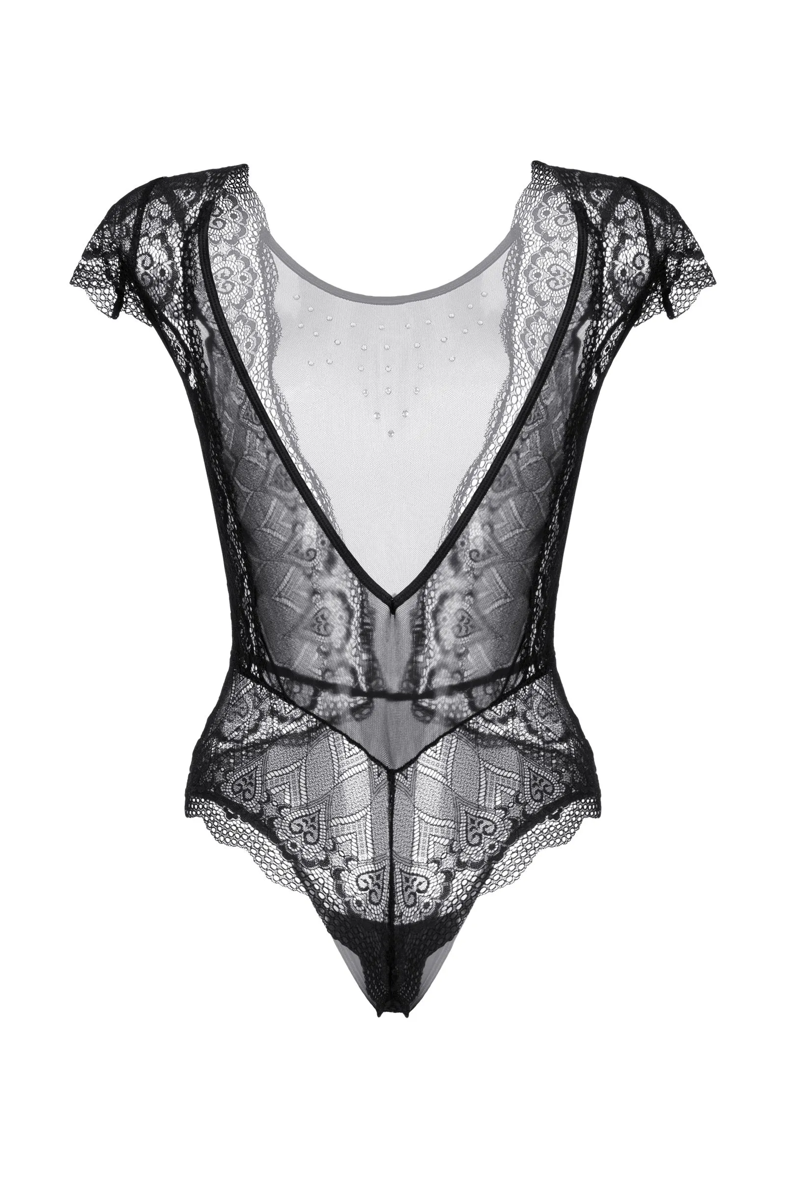 Боди со стразами Delight от Candy Girl® - для тех, кто желает увидеть откровенный восторг в глазах партнера! Приталенный силуэт, V-образный рисунок швов и шикарные кружевные вставки создают правильные визуальные акценты. Аккуратные рукава и россыпь страз на декольте добавляют интригующей игривости образу. Крой с открытой спиной и использование эластичных материалов позволяют комфортно носить и снимать боди без лишних усилий.