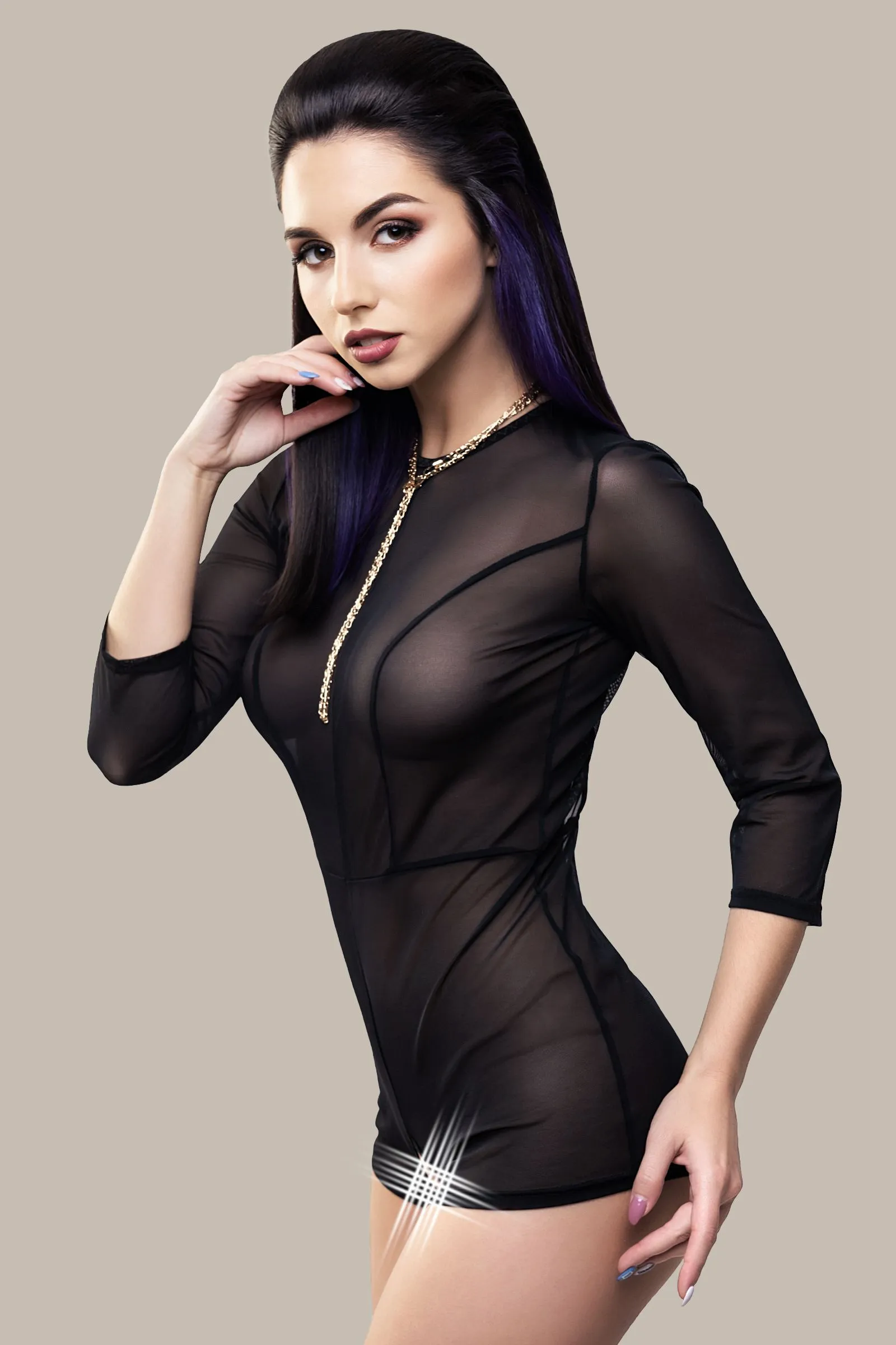 Линия провокационного эротического белья WANAME® Apparel – для женщин, которые хотят наслаждения и не скрывают этого. Эротический комбинезон «При́сио́сити» (англ. Preciosity – «Изысканность») из тонкой прозрачной эластичной сетки облегает фигуру, ощущается невесомым, не сковывает движений, но визуально меняет силуэт. Шелковистая поверхность материала дарит приятные ощущения при прикосновении. Современные элементы дизайна тешат женское самолюбие. Деликатные вертикальные швы акцентируют внимание на плавных изгибах тела и создают силуэтную посадку. Горизонтальный шов визуально подчеркивает талию. Обтягивающие рукава добавляют фигуре грациозности. Застежка на шее, открытая спина и эротический доступ подчеркивают чувственный образ. Модели белья Waname® Apparel эксклюзивны, разработаны и произведены в России с учетом предпочтений российских покупательниц.
