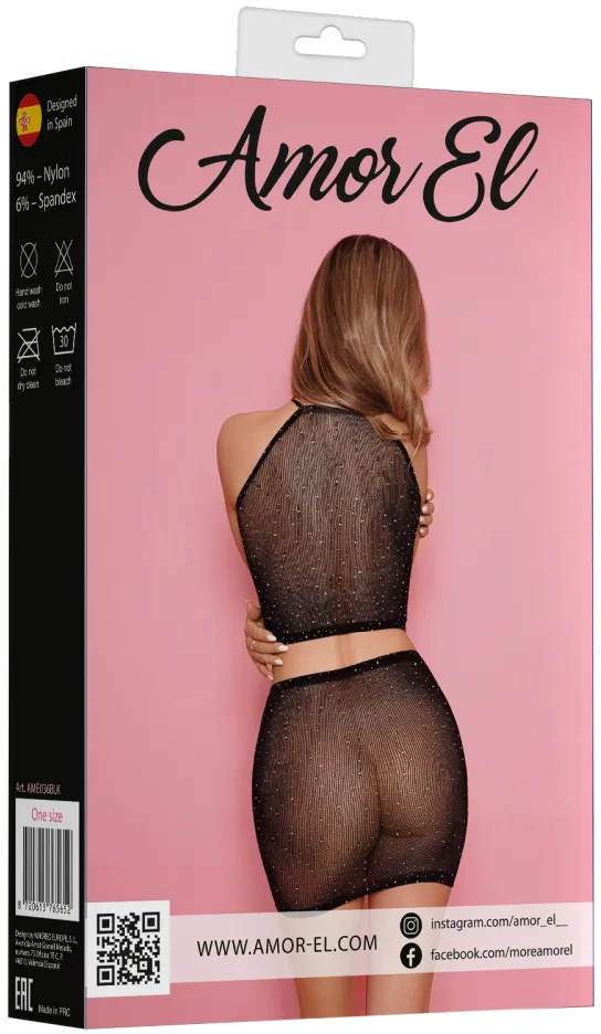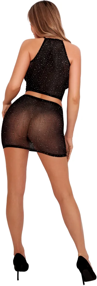Комплект из сетки со стразами, состоящий из топа и соблазнительной юбки.