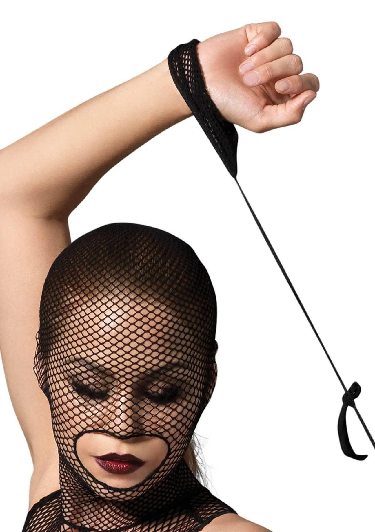 Оригинальный комбинезон-сетка от американской компании Leg Avenue выполнен в стиле БДСМ из черного материала в сетку и имеет несколько вырезов. Чулок закрывает лицо, открытым остается только рот. На затылке есть вырез, позволяющий не скрывать волосы. Грудь и ягодицы будут открыты - подобный провокационный наряд, несомненно, разожжет страсть в Вашем мужчине! Также в комплект входят мягкие путы для запястий.