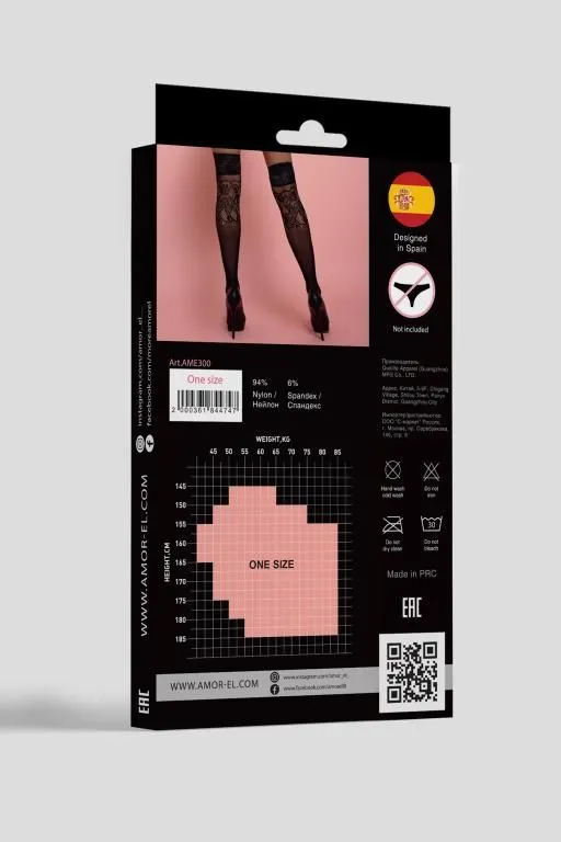 Чулки в мелкую сетку c ажурным рисунком, сверху украшены кружевной резинкой на силиконе. Плотность эквивалентна 20 ден. Благодаря использованию большего количества нейлона, белье сохраняет очертания, не деформируется, растягивается и выгодно облегает фигуру. А за счет эластана, даже после сильного растяжения, оно не деформируются, и всегда принимает исходную форму.