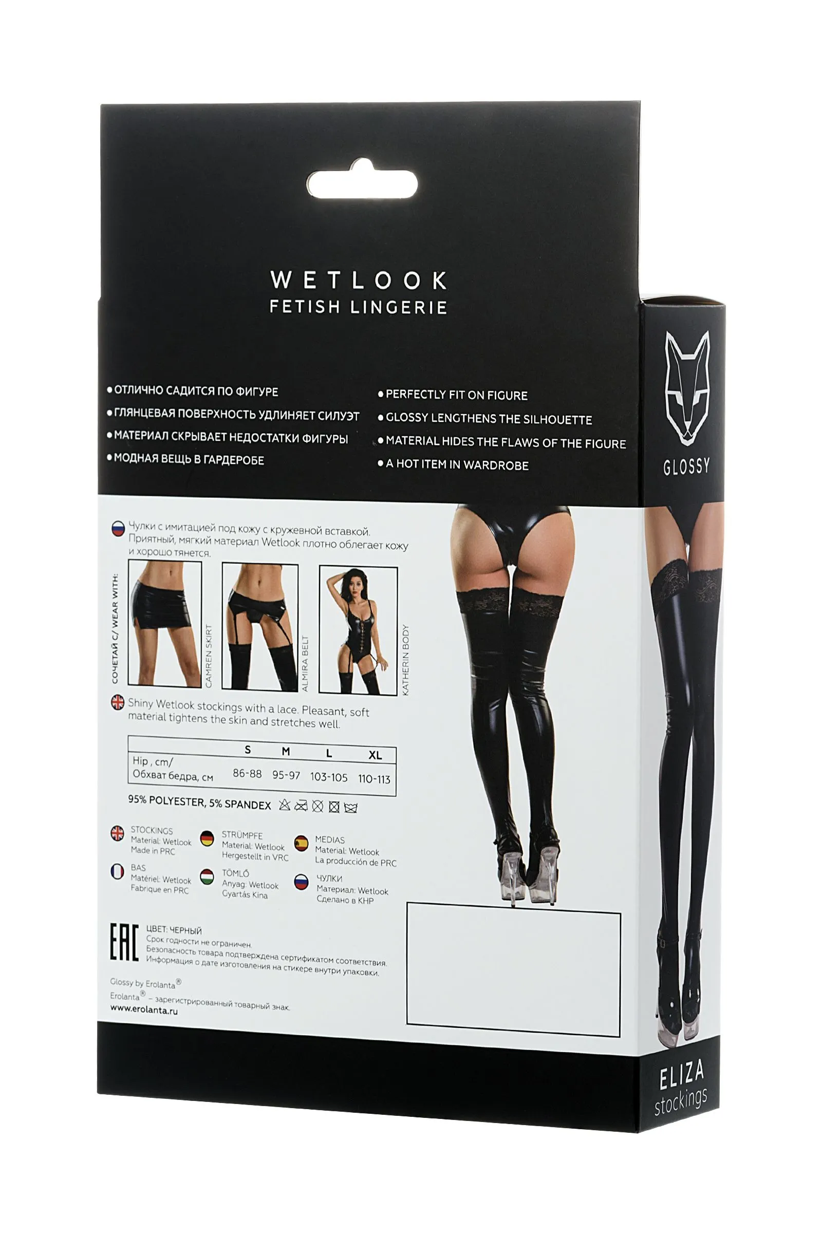 Встречайте новую, долгожданную и блестящую коллекцию белья из популярного материала Wetlook – Glossy. WETLOOK: Отлично садится по фигуре; Глянцевая поверхность визуально удлиняет силуэт; Плотный материал скроет мелкие недостатки фигуры; Модная вещь в сексуальном и базовом гардеробе. Чулки с имитацией под кожу с кружевной вставкой. Приятный, мягкий материал Wetlook плотно облегает кожу и хорошо тянется. Притягательный блеск чулок создает сексуальные блики на гладкой поверхности ног. Wetlook чулки скроют мелкие недостатки и визуально сделают ваши ноги длиннее. Кружевной элемент придаст образу дополнительной сексуальности.