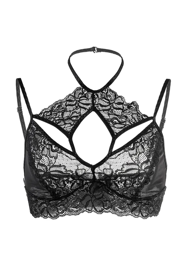 Мягкий удлиненный топ Erolanta® Nelly из эластичной сетки со вставками кружева, с декоративными вырезами. Свободный ажурный край. Регулируемые бретели. Застежка на шее и многорядная застежка на спине. *Допускается замена кружева на аналогичное. На видео бралетт Erolanta® Nelly дополнен идеально сочетающимся трусиками Erolanta® Felicity.