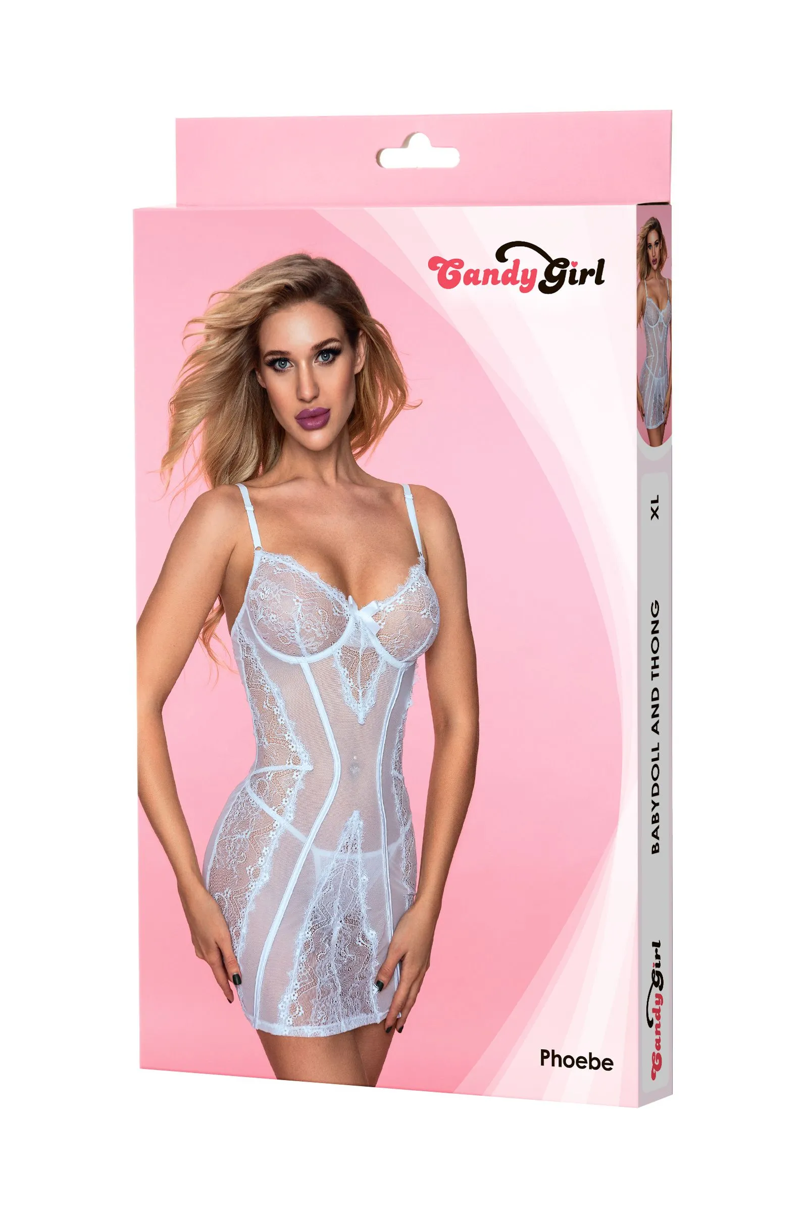 Приталенная комбинация Candy Girl® Phoebe подчеркивает естественные изгибы и визуально добавляет силуэту стройности. Кружевной лиф с косточками приподнимает грудь, акцентируя внимание на декольте с помощью сатинового бантика. Эластичная прозрачная сетка нежно облегает тело. Регулируемые бретели обеспечивают идеальную посадку. Подходящие стринги идеально дополняют комплект.