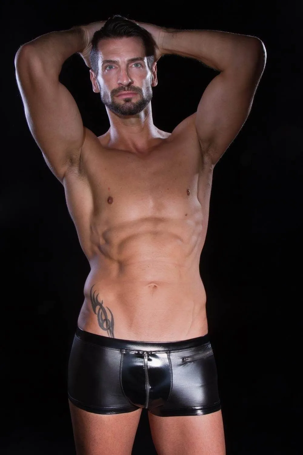 Черные боксеры от французского дизайнера Patrice Catanzaro выполнены из черного блестящего материала. Если Вы хотите приятно удивить свою возлюбленную, то подобное необычное нижнее белье идеально подойдет для такого случая. Боксеры будут отлично обтягивать ягодицы, притягивая к ним страстный взгляд Вашей избранницы. Спереди есть молния, которая не только будет очень удобна во время повседневного ношения, но и пригодится во время самых страстных моментов с Вашей партнершей. Сбоку есть небольшой кармашек, который также застегивается на молнию.